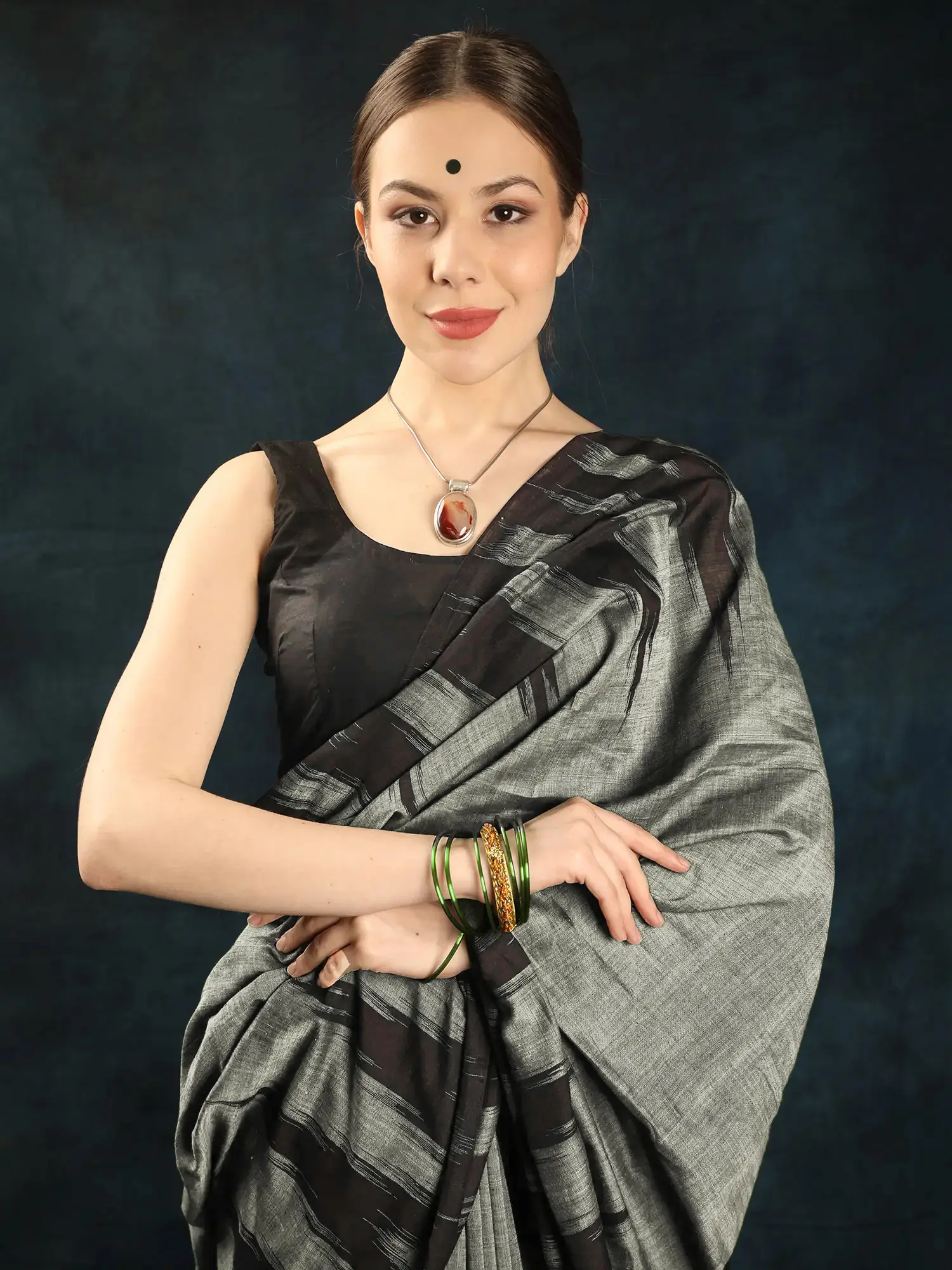 Frost-Gray Handloom Pure Silk Two Ply Fashion Mask with Ikat Weave from Pochampally