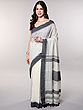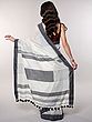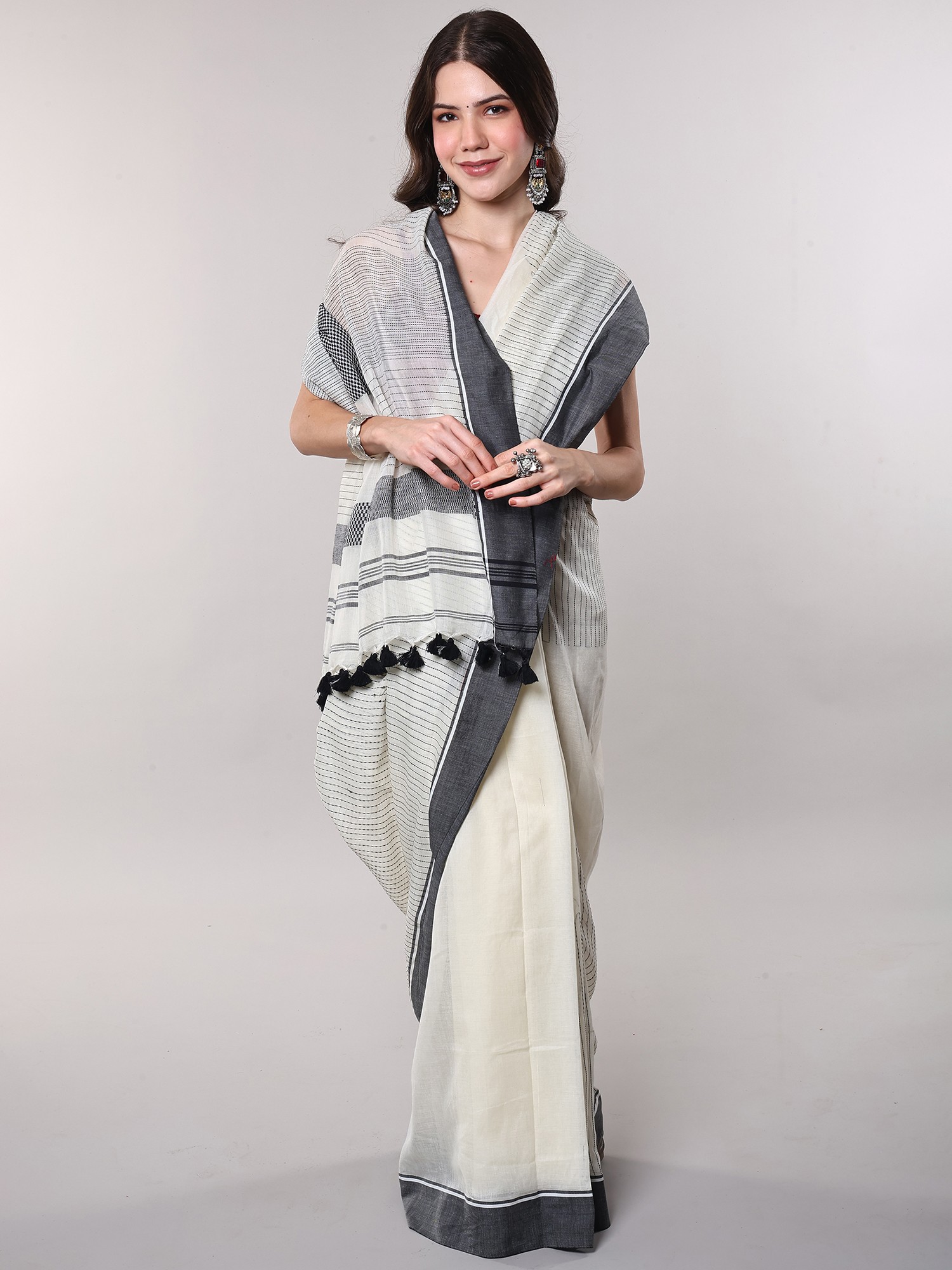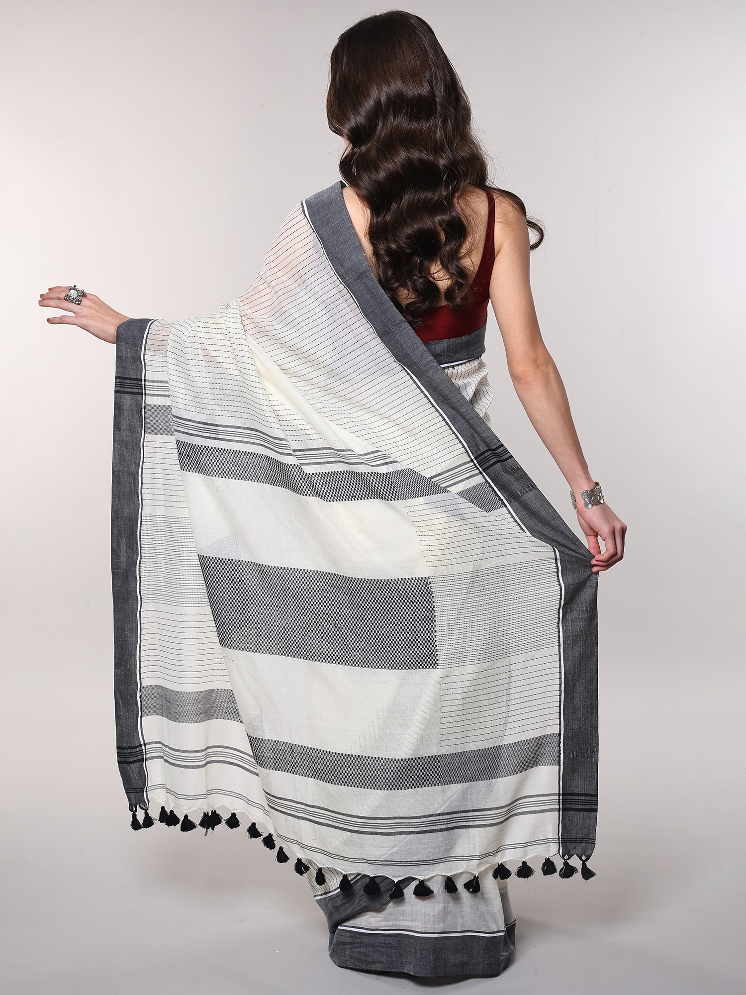 Lucnet-White and Black Ikat Woven Pure Cotton Saree from Puchampally