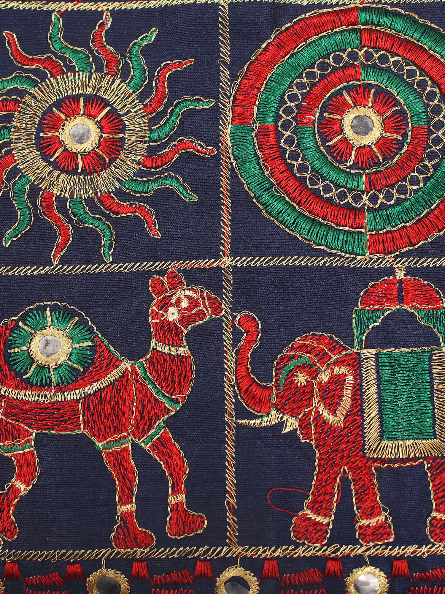 This Pure Cotton Shoulder Bag from Gujarat is a captivating blend of cultural artistry and practical design. Adorned with a Zari-Mirror Embroidered Patch featuring a Camel-Elephant Motif, the bag becomes a canvas of traditional craftsmanship. The vibrant colors, intricate detailing, and the play of mirrors showcase the rich textile heritage of Gujarat.