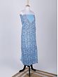 White Fabric with Fabric with Lucknowi Chikan Embroidery in Salmon Thread