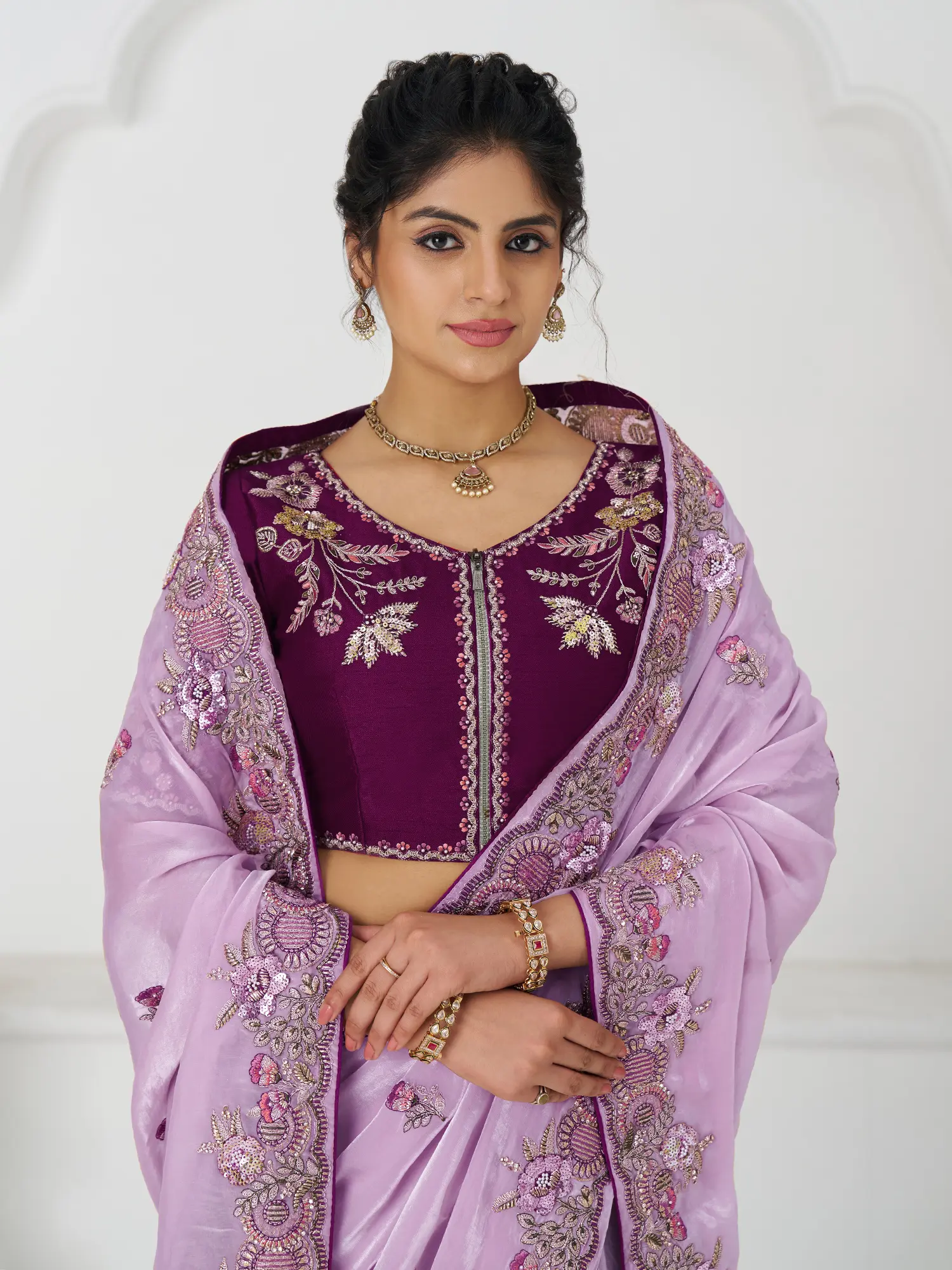 Floral Print Attractive Organza Silk Flared Anarkali Suit With Matching Dupatta