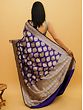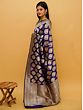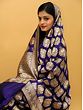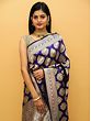 Selecting the best mulberry strands, covering them in a regal blue shade, weaving the delicate strands together, and embellishing the silken canvas with Zari embroidery is a long and meticulously carried out process, at the end of which one receives this pure Katan silk Banarasi saree. The blue field of the sari is adorned with a repetition of floral bunches, which have several blooming flowers, buds, and leaves gently huddled together. On the pallu of the sari, a network of creepers made from lotus blossoms, leaves, and buds complete the magical traditional Indian wear for you to dazzle in.
