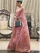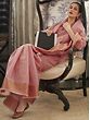 hues and softer fabric, this lovely pure linen silk saree is a chic traditional