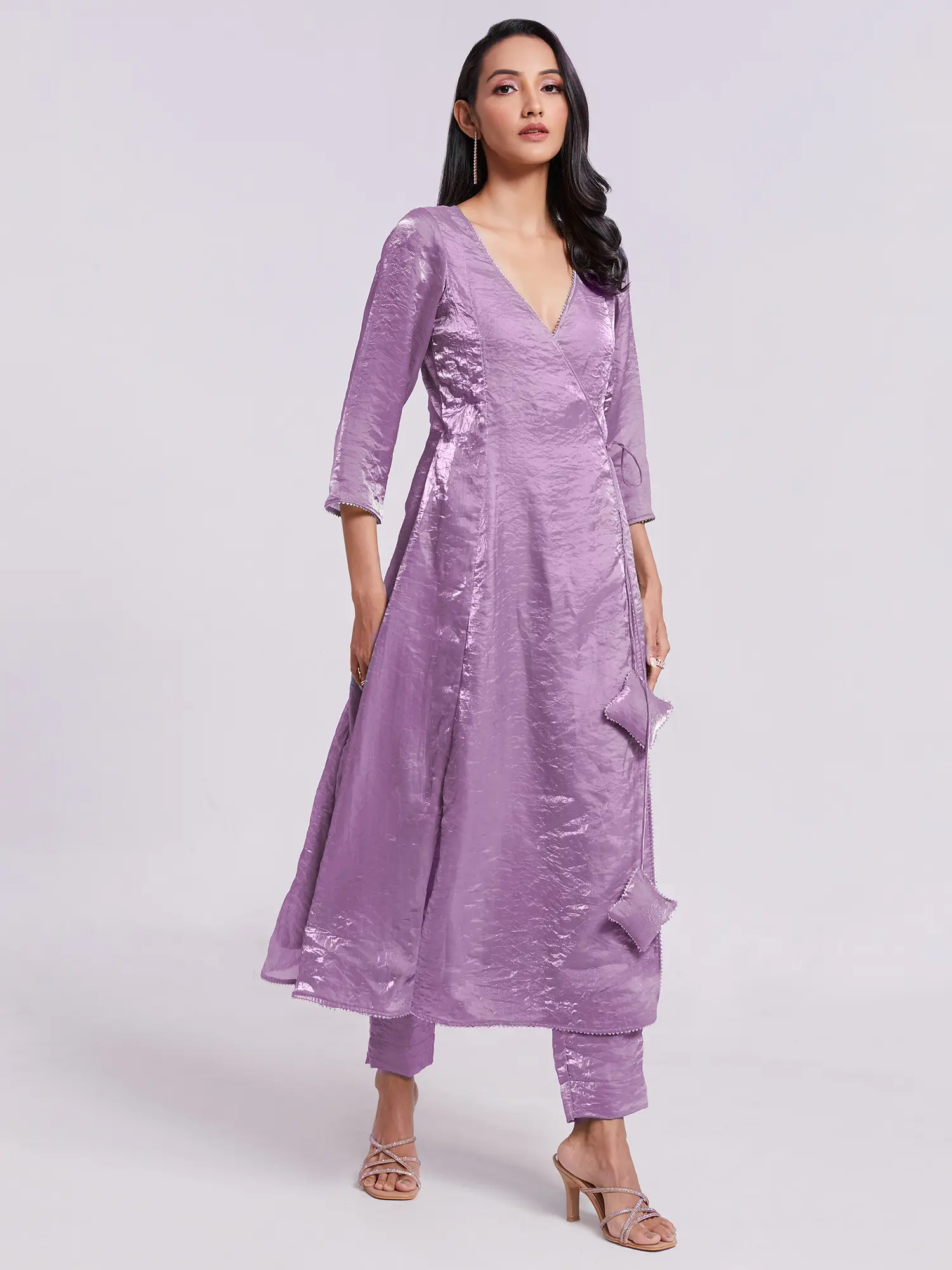 This lilac organza set is a testament to versatile elegance. Whether you're attending a family wedding, a celebratory dinner, or a cultural festival, this ensemble is sure to impress. Pair it with statement earrings and delicate bangles to enhance its traditional appeal, or opt for a more minimalist approach with a sleek clutch and understated jewelry for a modern, sophisticated look. The unique textured fabric of the organza ensures that this outfit will be a cherished addition to your ethnic wardrobe, promising to be a showstopper on every occasion it graces.