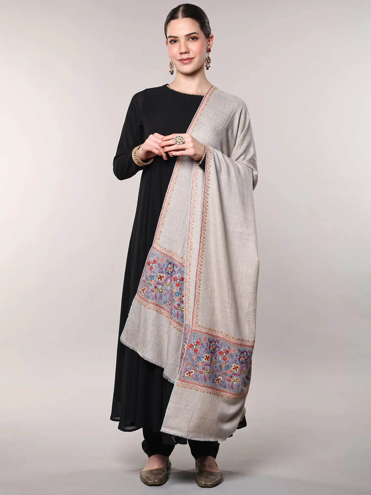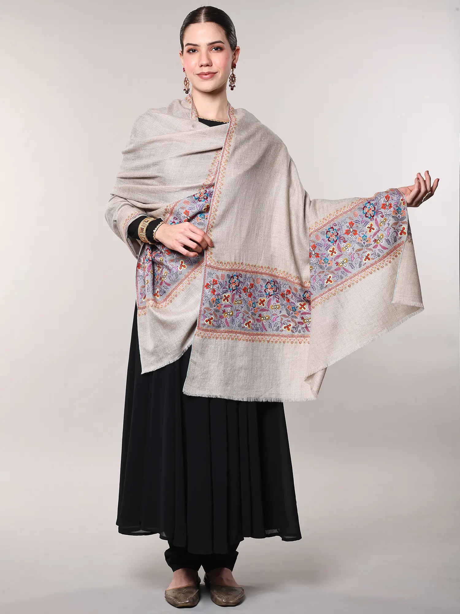 Pure Pashmina Palladar Shawl with Floral Sozni Embroidery by Hand from Kashmir