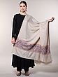 Pearled-Ivory Pure Pashmina Shawl from Kashmir with Sozni Floral Hand-Embroidery All-Over