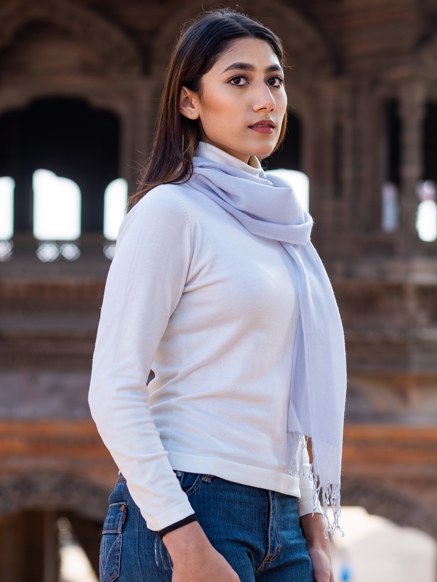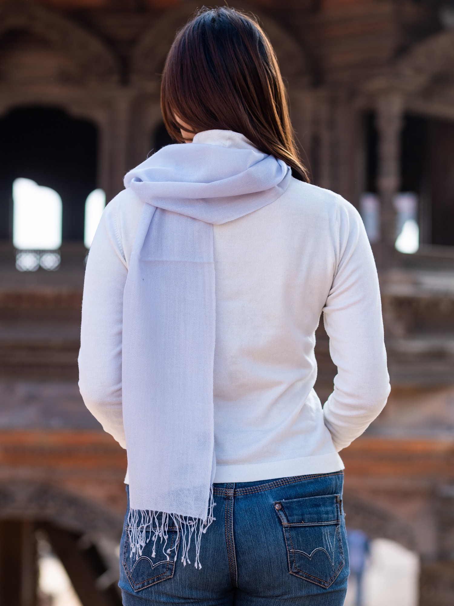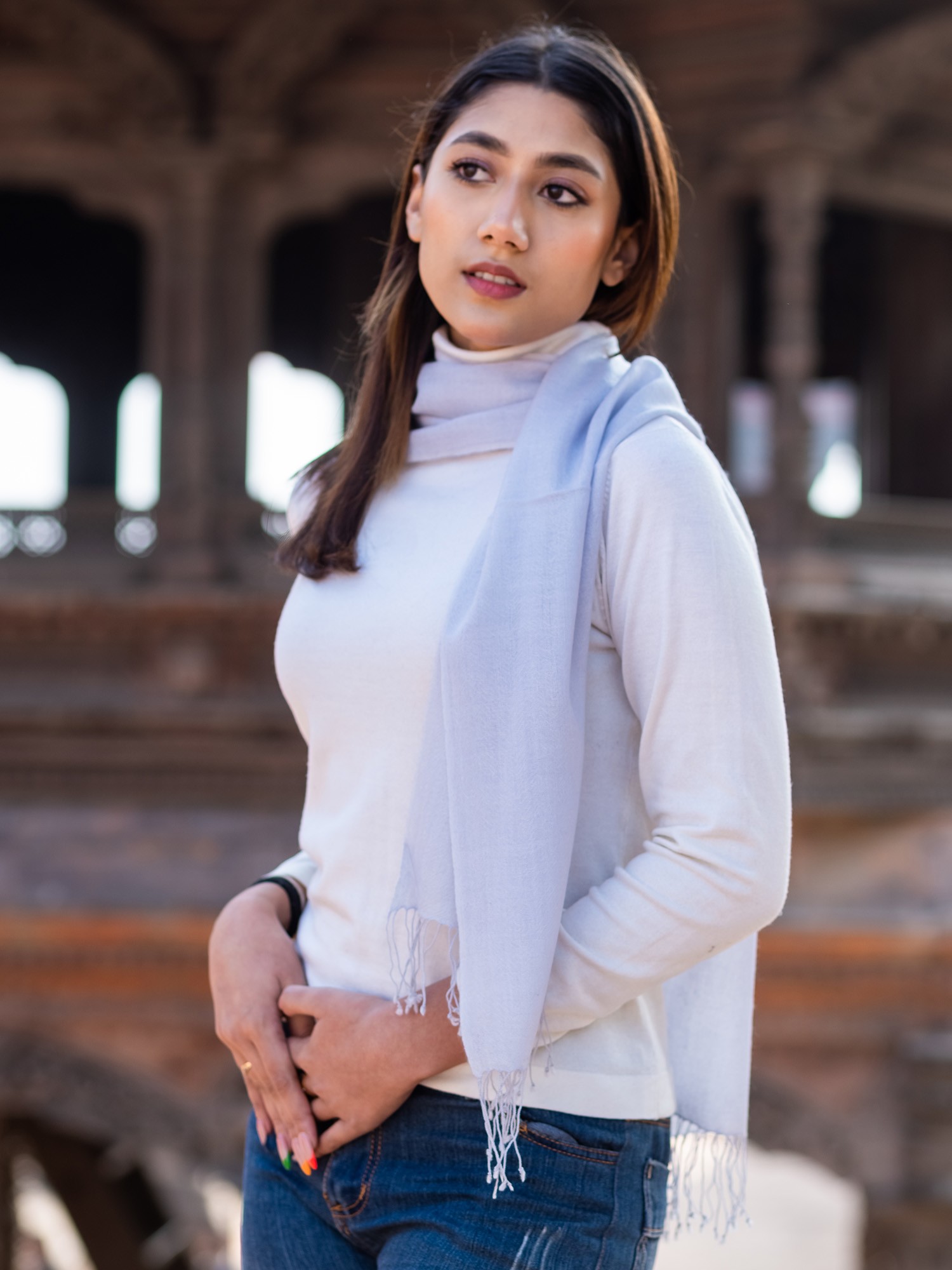 Embrace the sumptuous charm of our Pure Pashmina Plain Weave Scarf, a true gem from Nepal. Meticulously crafted from the finest Pashmina wool, this scarf is a testament to the Himalayan region's rich textile heritage. The delicate fringe adds an elegant touch to this classic piece. Pashmina, renowned for its exceptional softness and warmth, has been cherished for generations. Today, it seamlessly blends tradition with modernity, making this scarf not only a symbol of comfort but a timeless fashion statement. Wrap yourself in the legacy of Pashmina and experience its exquisite embrace.