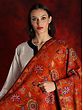 Pashmina has always been synonymous with luxury and comfort. Even during the Mughal era, Pashmina shawls were used as presents of high value. As time passed, they became popular among the general public as well but could be afforded only by the elite. Today, Pashmina products are purchased and worn by admirers of the rich heritage of India. Their lightweight and breathable fabric along with their finesse make them popular among many. With their fine weave and exquisite designs, Pashmina products continue to keep the age-old Kashmiri tradition alive just like this elegant saffron colored piece.