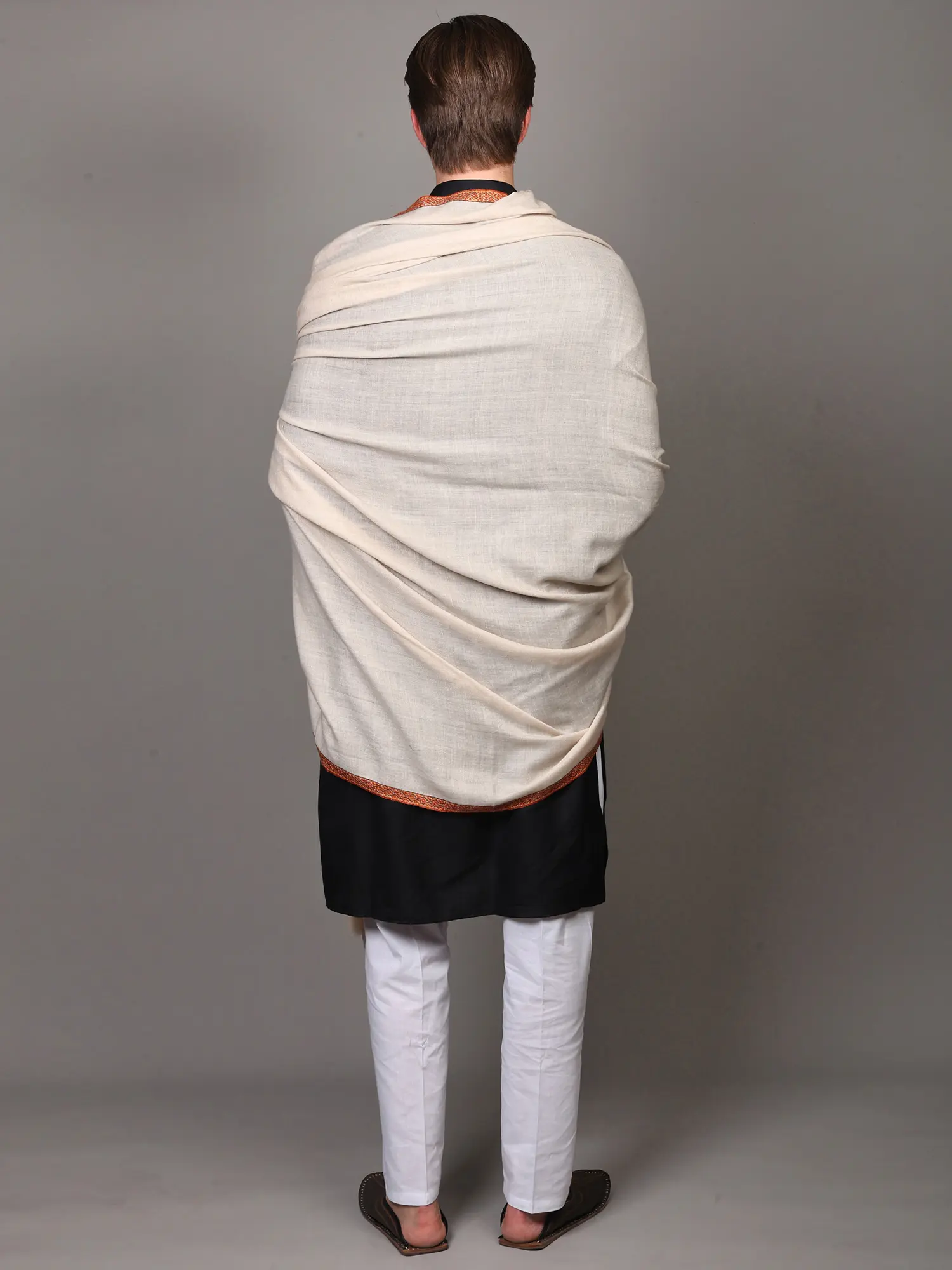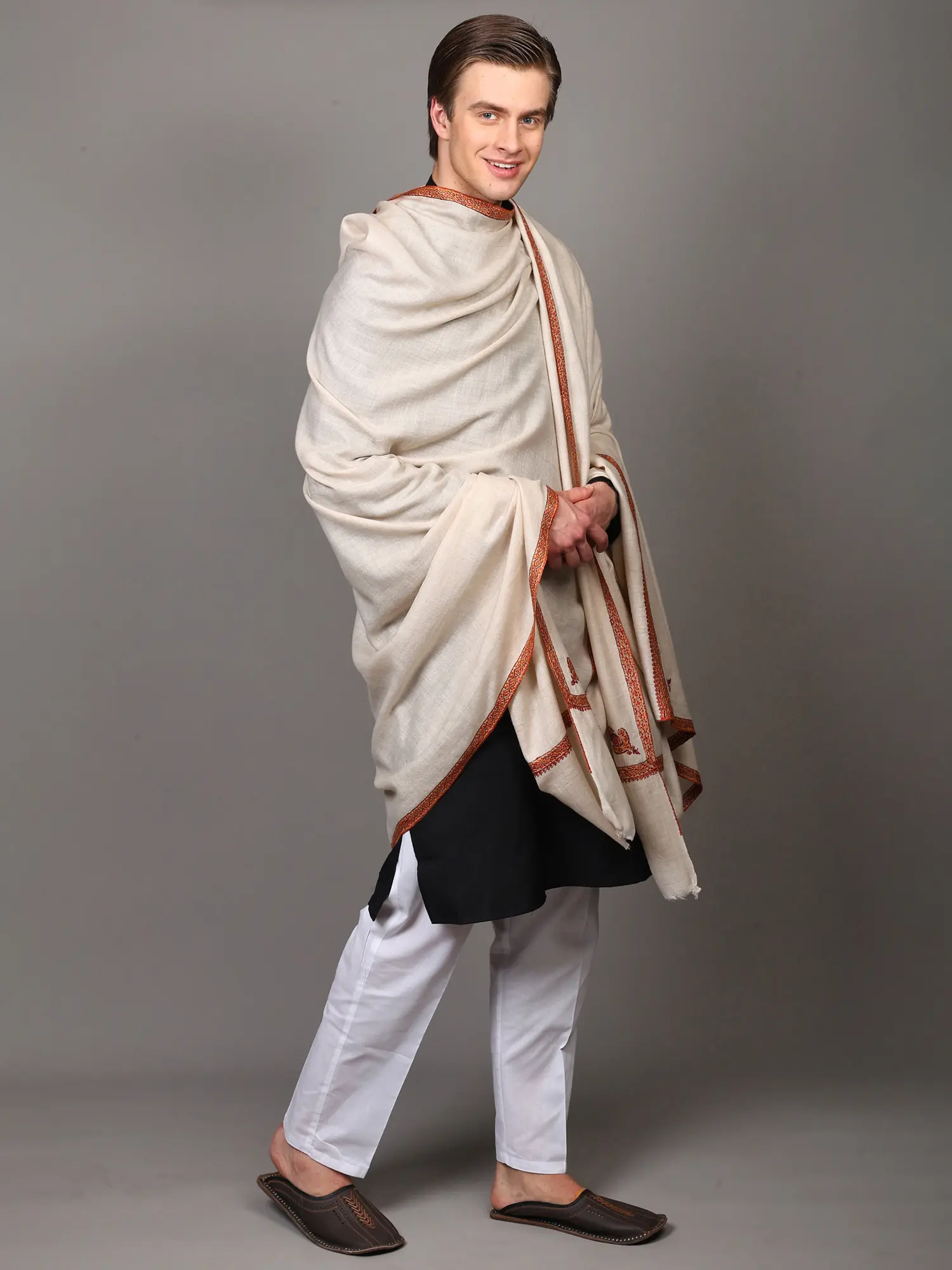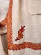 Cannoli-Cream Pure Pashmina Shawl with Sozni Hand-Embroidered Flowers and Patch Palla from Srinagar