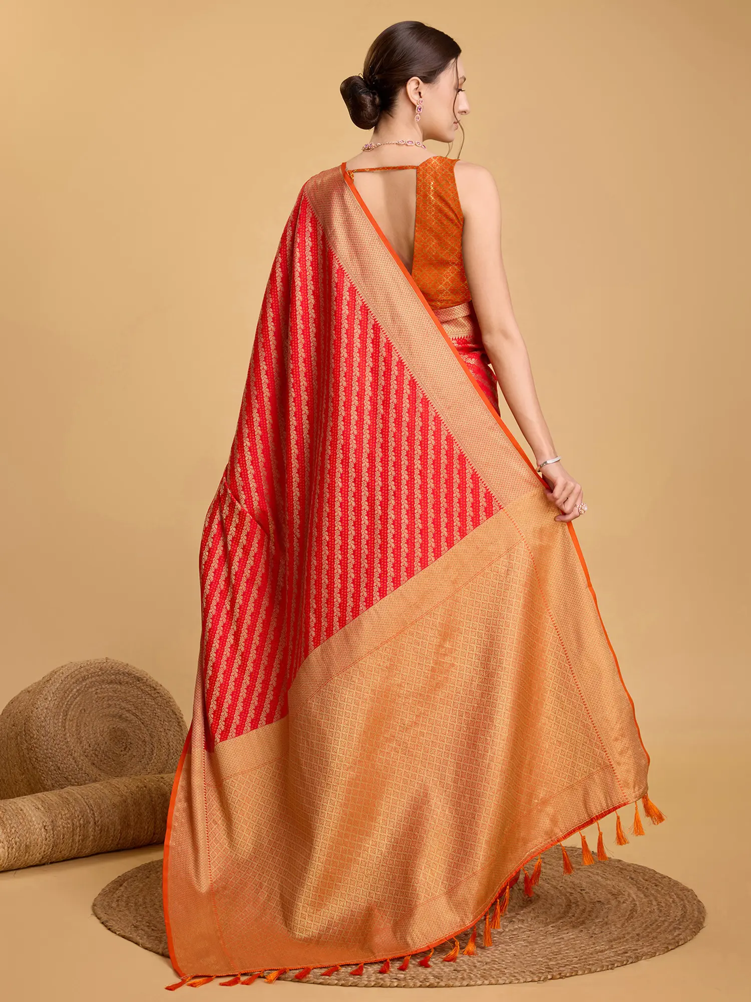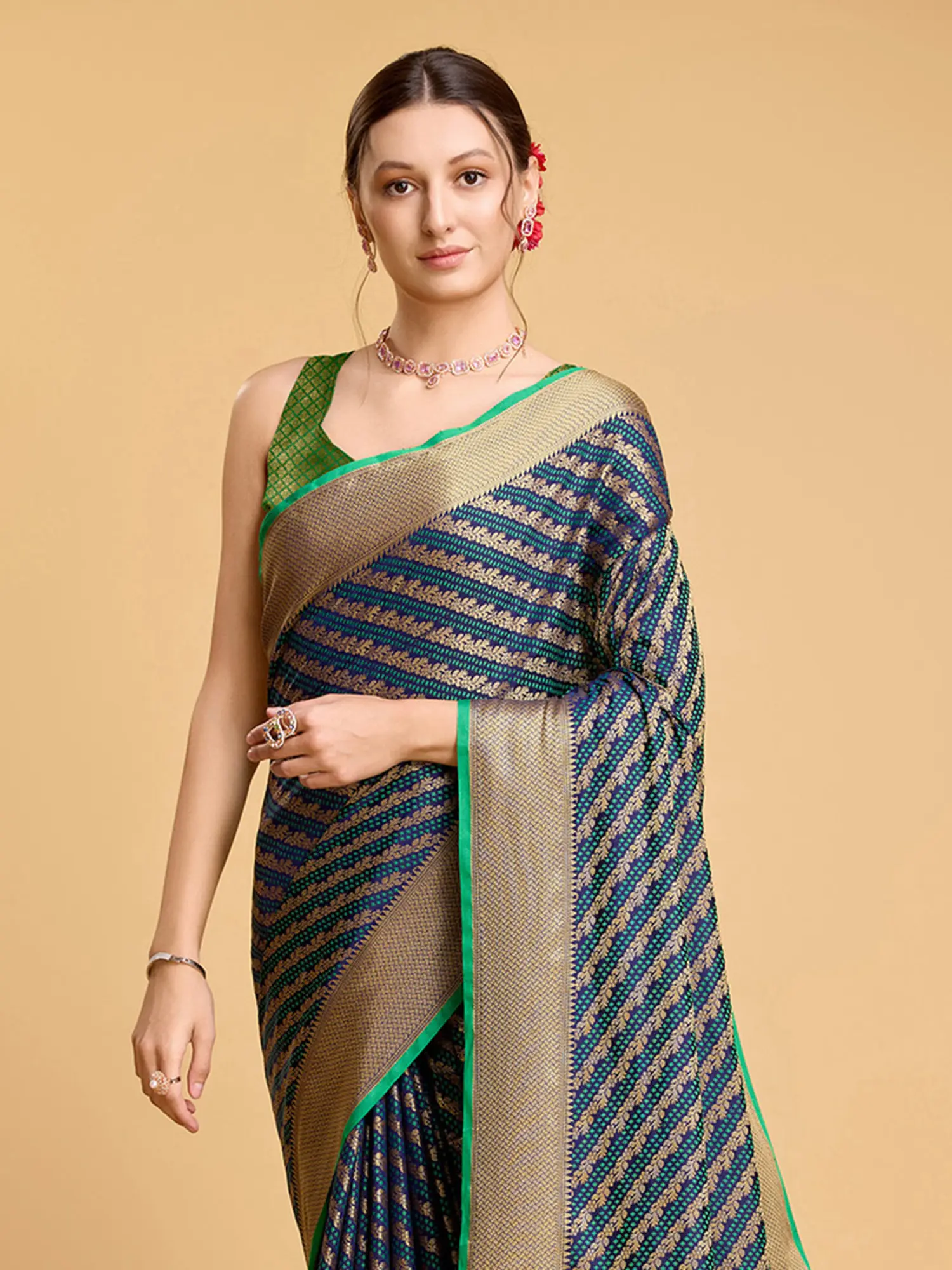 Art Silk Saree with Golden Stripes and Traditional Paisley Motifs All Over