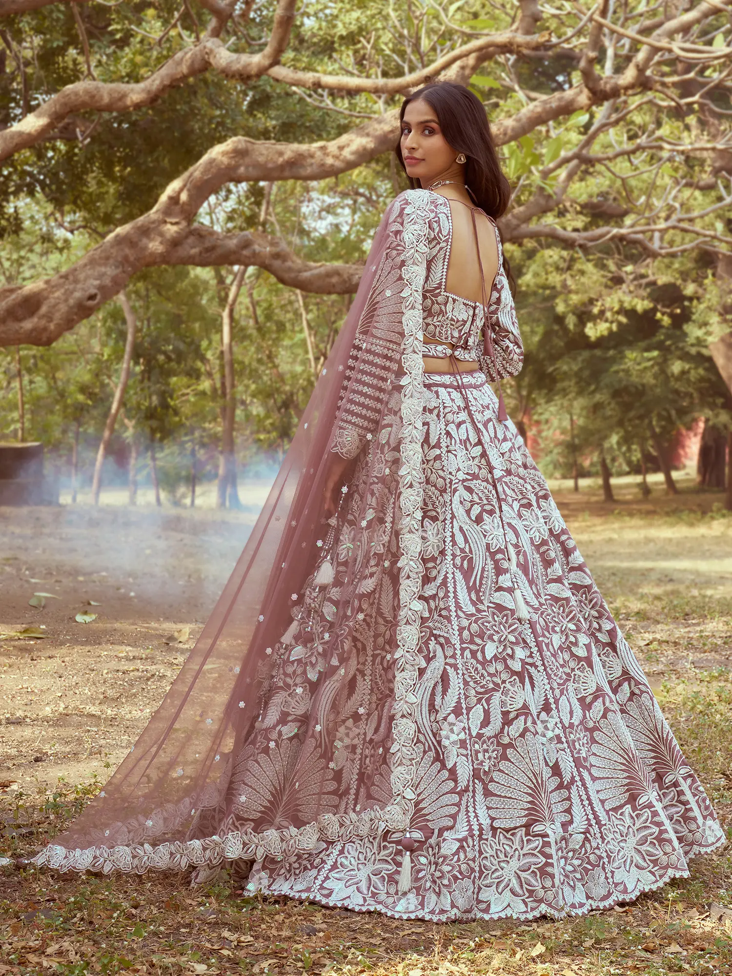 Net Chakra-Vine Motif Bridal Lehenga Choli With All-Over Zari, Sequins, Diamond, Multi Thread Embroidery With Soft Net Butti Pattern Dupatta