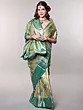 Bleached-Aqua Zari work Pure Silk Saree with Stripe Border from Bangalore
