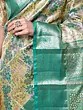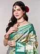 Soothing Lush Meadow Pure Silk Saree from Pochampally with Ikat Woven Pallu and Temple Border