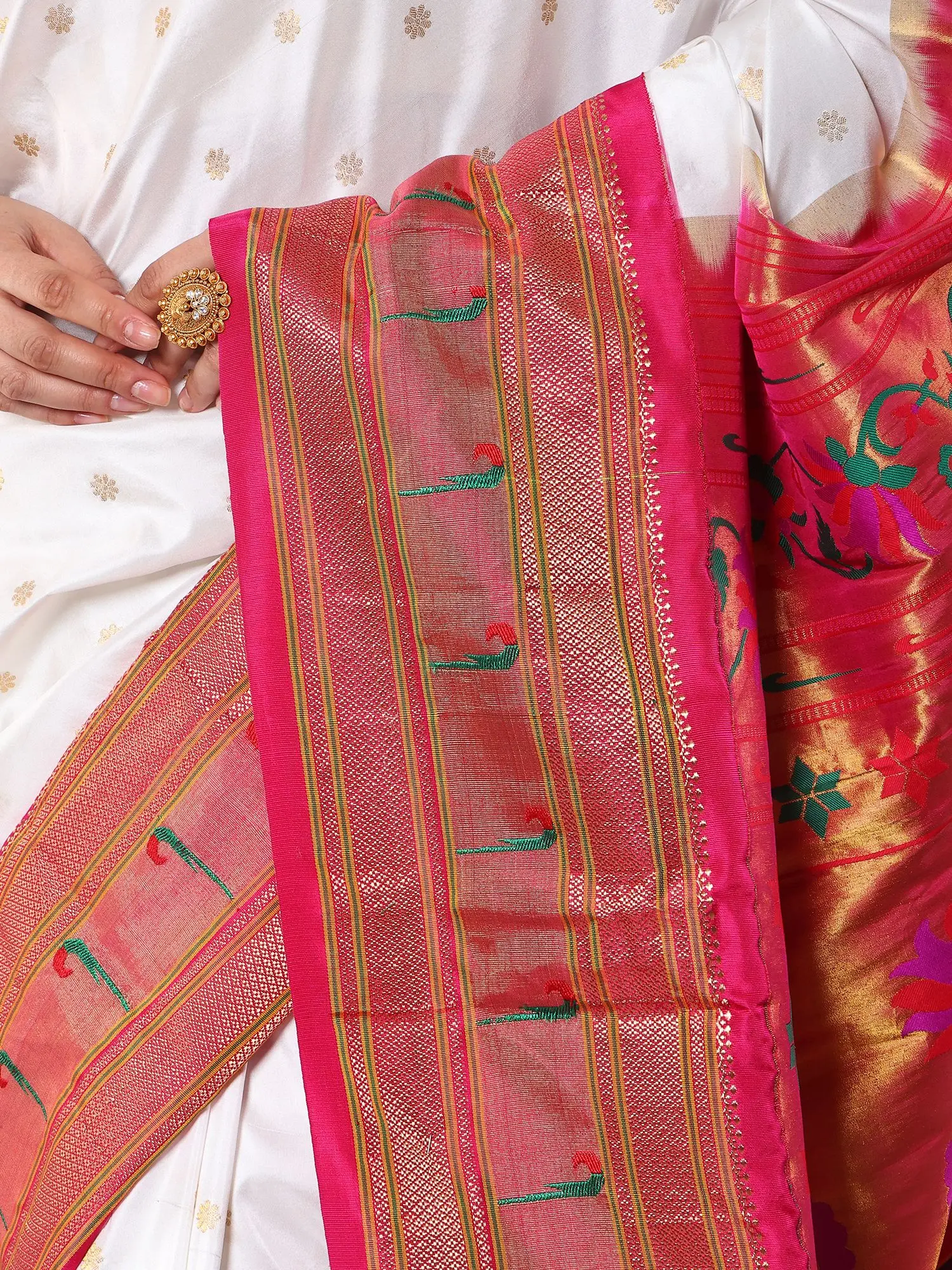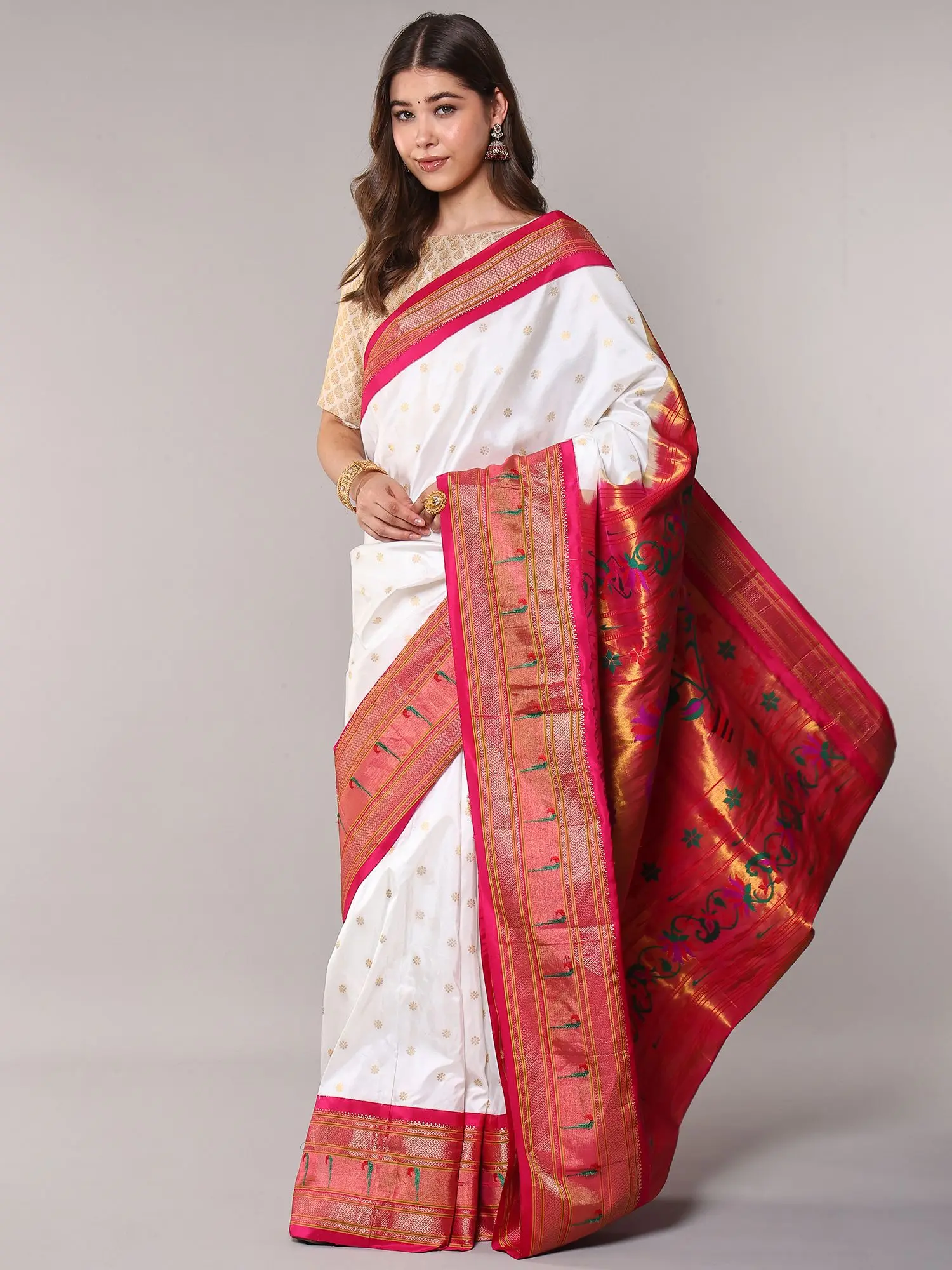 Golden White Maharani Paithani Saree with Chattai Border and Zari Butta