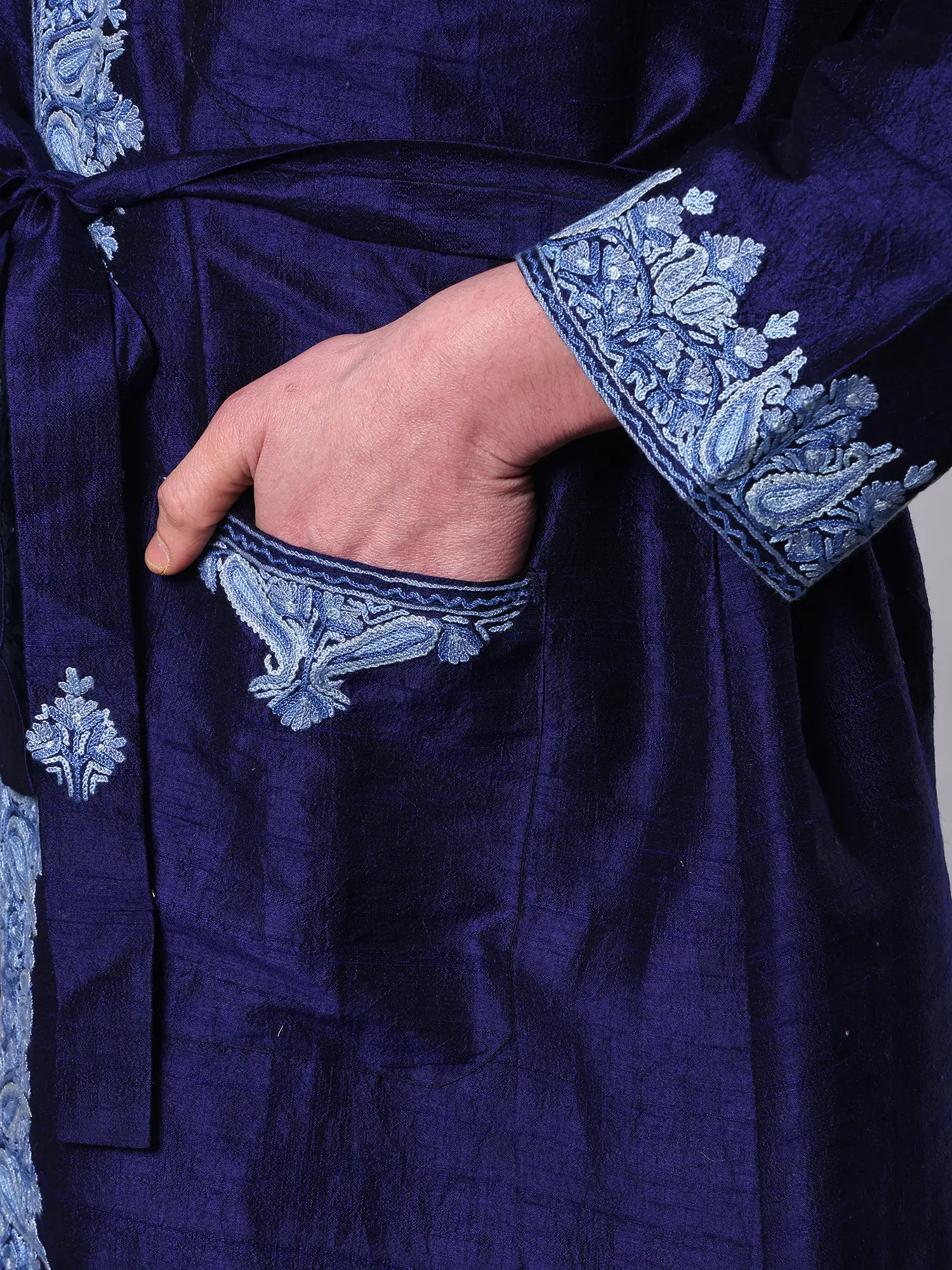 Kashmiri Robe with Aari Embroidered Paisley Border and Front Pockets