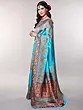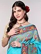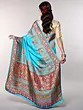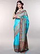 Medieval-Blue Pure Silk Handloom Saree from Bangalore with Golden Thread work Wedding Scene Border