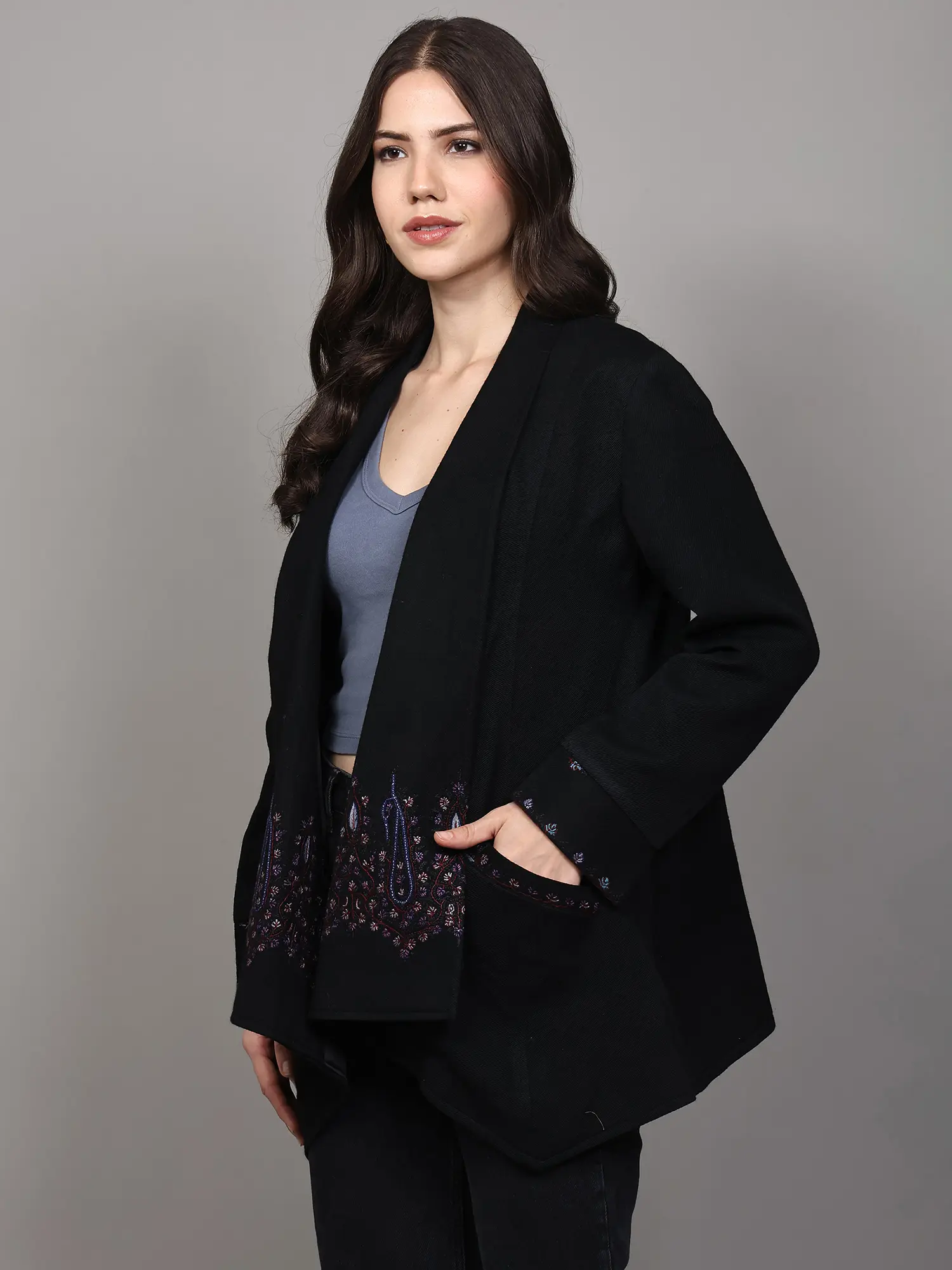 Kashmiri Short Jacket with Paisleys Hand Aari Embroidery on Border