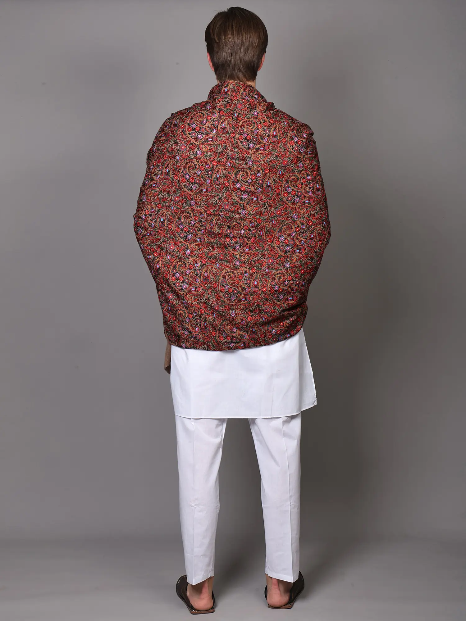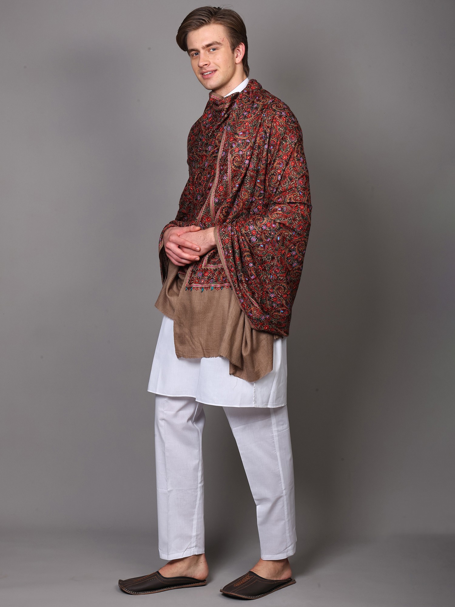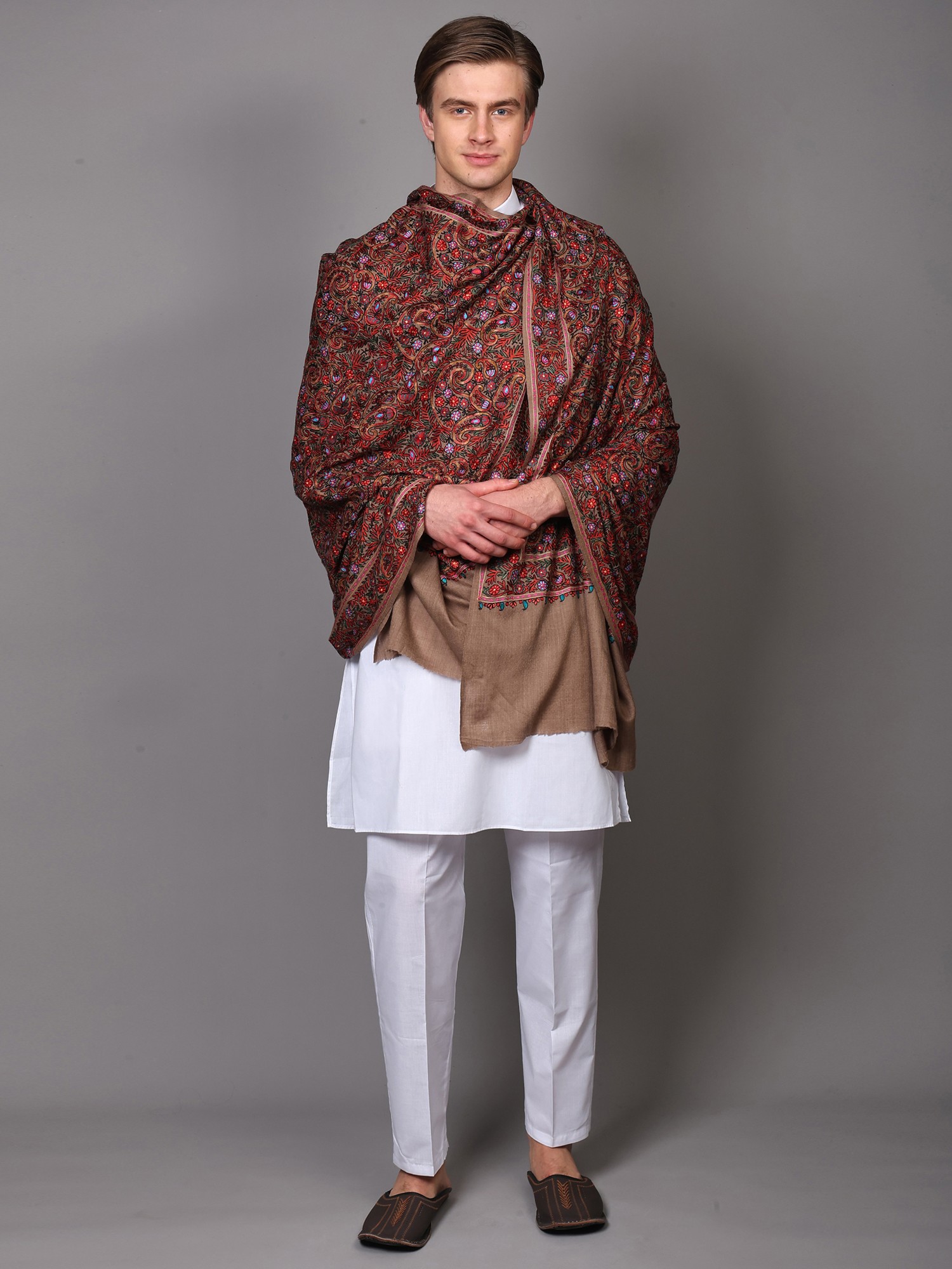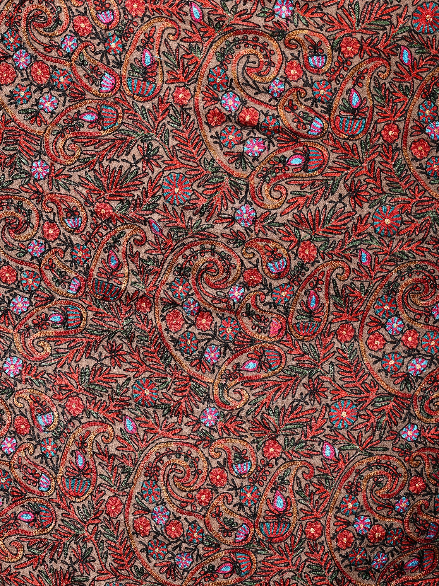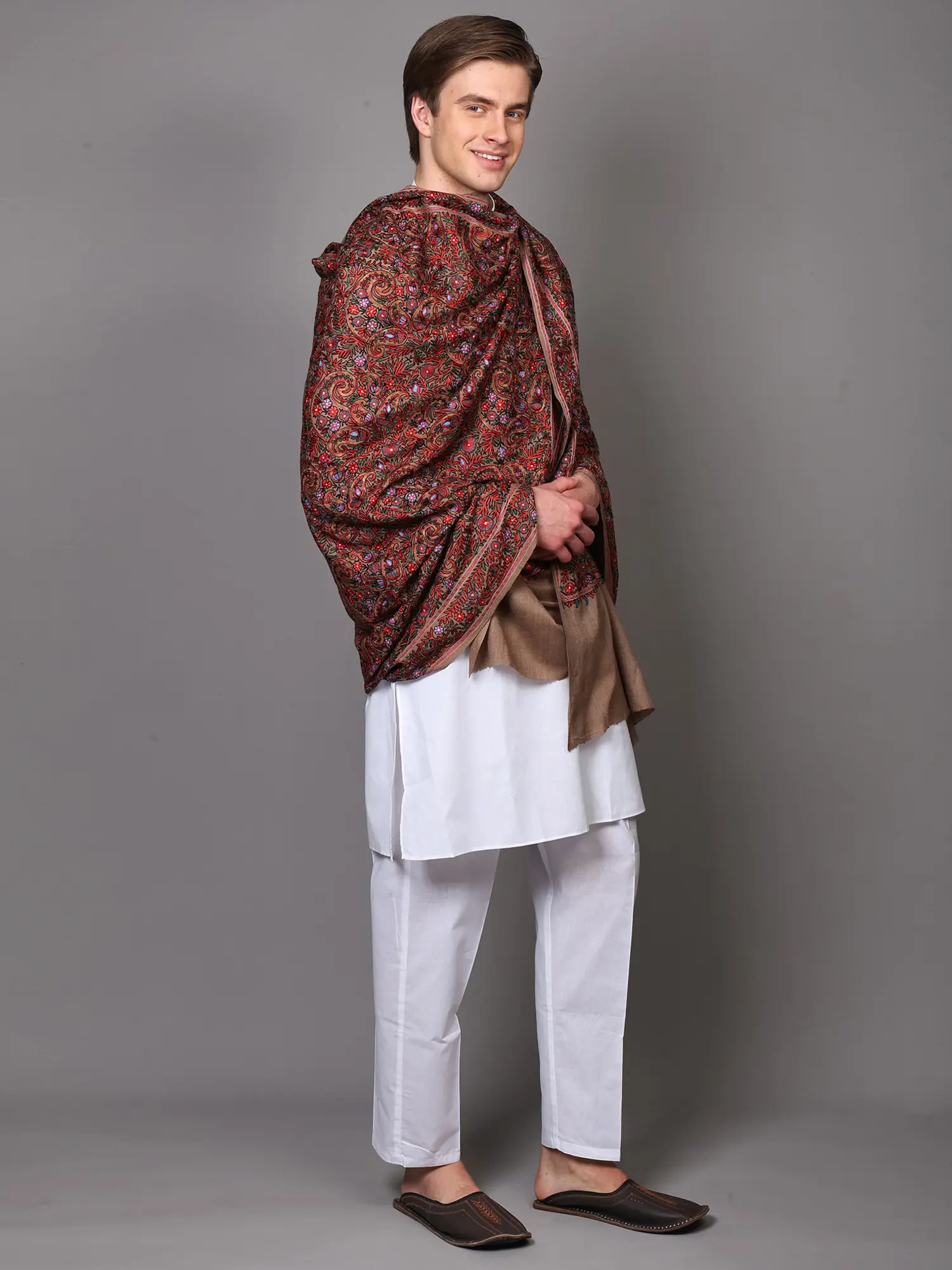 Pure Wool Shawl from Amritsar with Aari Embroidered Floral Vines