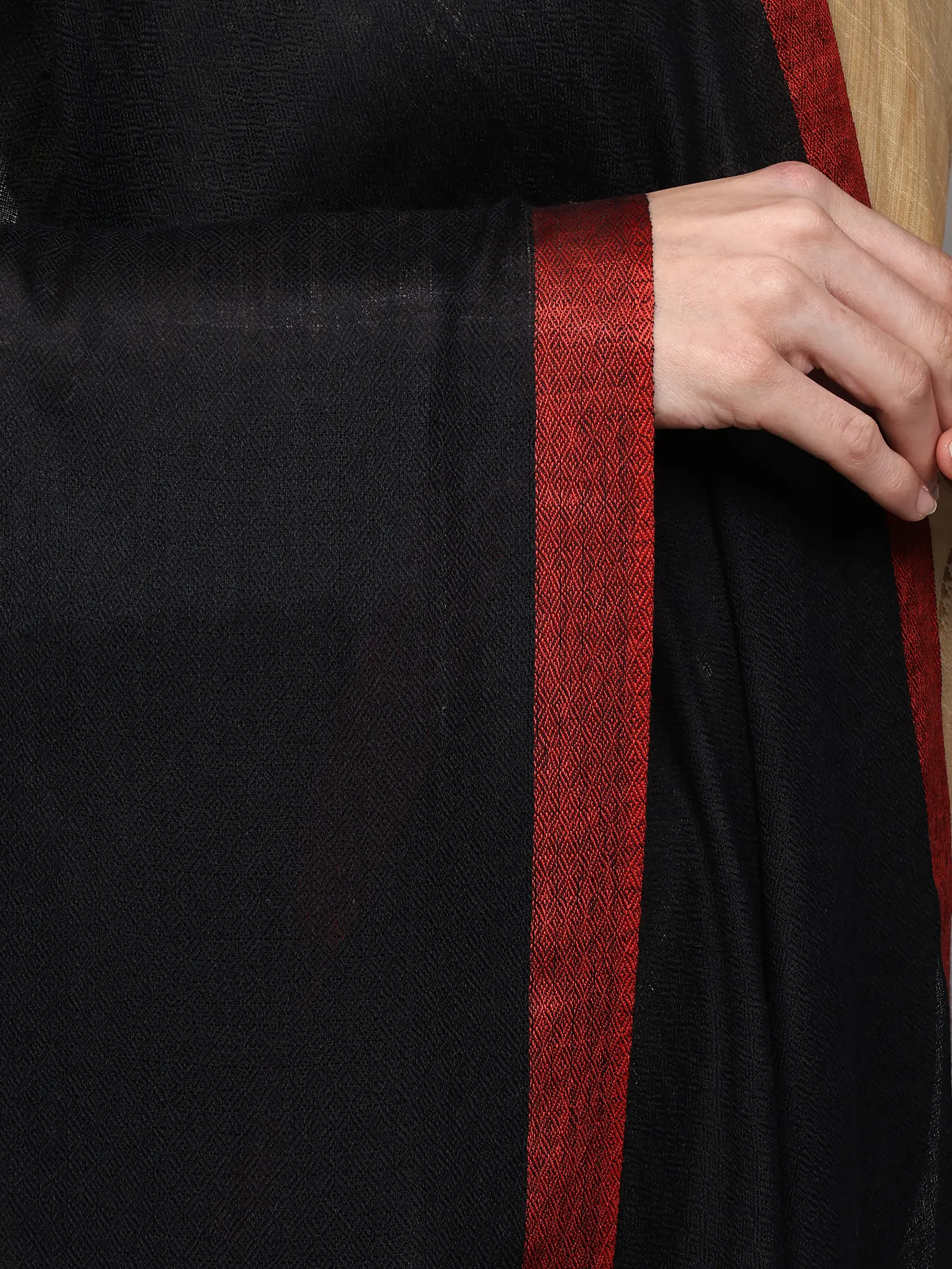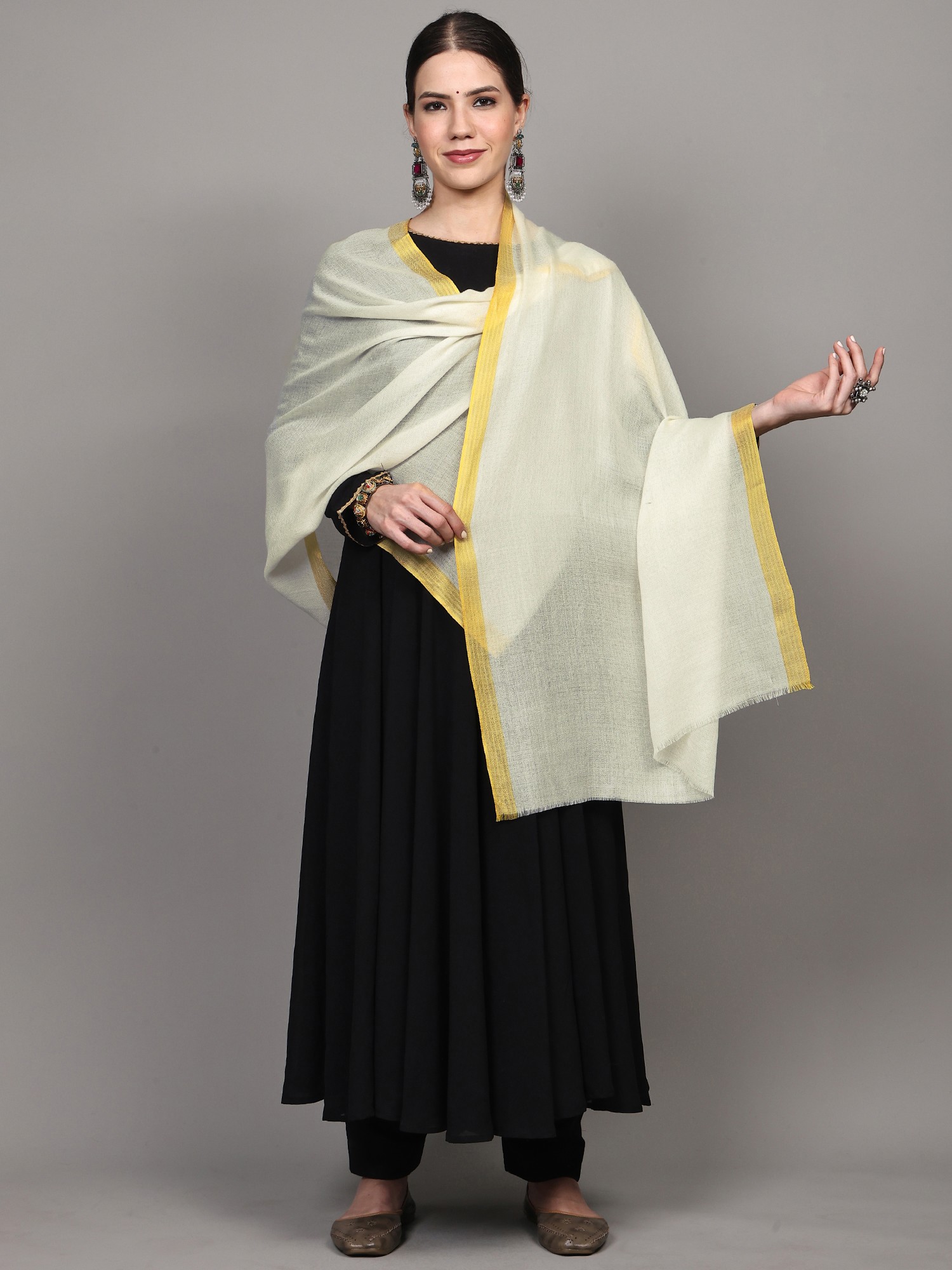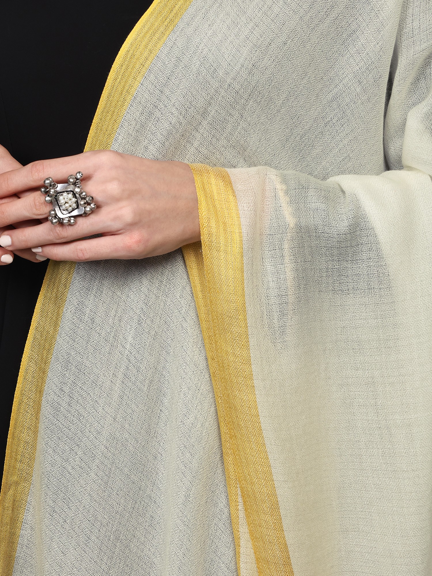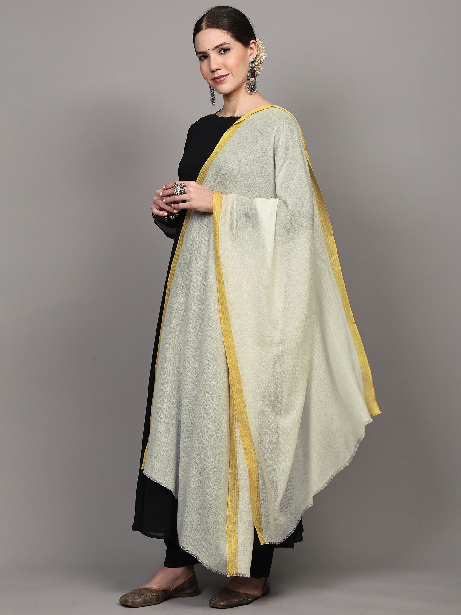 Iron-Grey Diamond Weave Stole with Kinnauri Border from Kullu