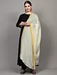 Jet-Black Pure Wool Stole from Srinagar with Sozni Embroidered Paisleys Bootis