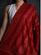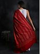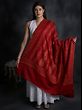 Racing-Red Ikat Handloom Shawl from Srinagar with Sozni-Embroidery by Hand