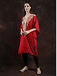The evening party attire game reaches new heights with this Sparkling-Grape Pure Wool Kashmiri Short Kaftan adorned with exquisite Tilla embroidery on the neck. The rich grape color, vibrant and captivating, sets this kaftan apart, instantly drawing attention and making a bold statement.
