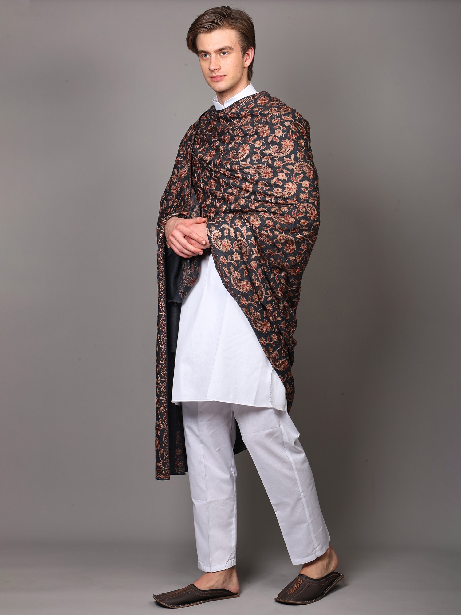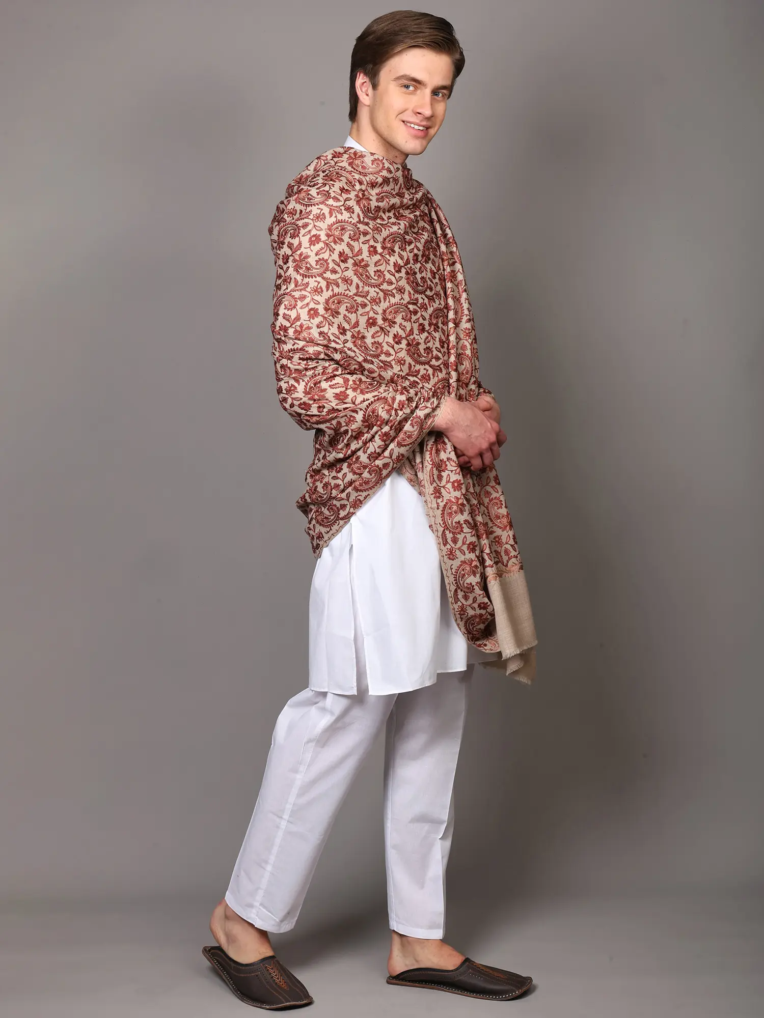 Men's Dushala Shawl (Lohi) with Stripes in Self Weave from Kullu