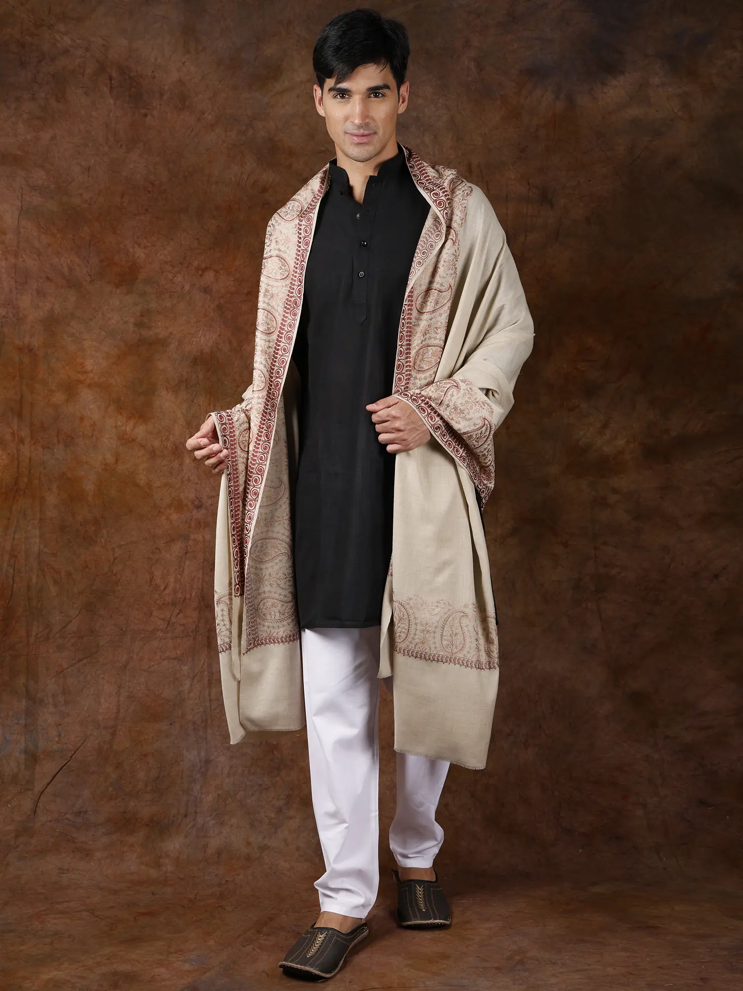 Designed with the discerning gentleman in mind, this pure wool shawl transcends mere outerwear. It’s a sophisticated accessory that can elevate both traditional and contemporary ensembles. Drape it over a kurta-pajama for a refined look at cultural events, weddings, or festive gatherings. Its generous size ensures it can be worn in various styles, offering both comfort and a distinctive flair. The inherent quality of pure wool ensures that this shawl will remain a cherished item for years to come, adapting effortlessly to changing styles and seasons. ––––––––––––––––––––