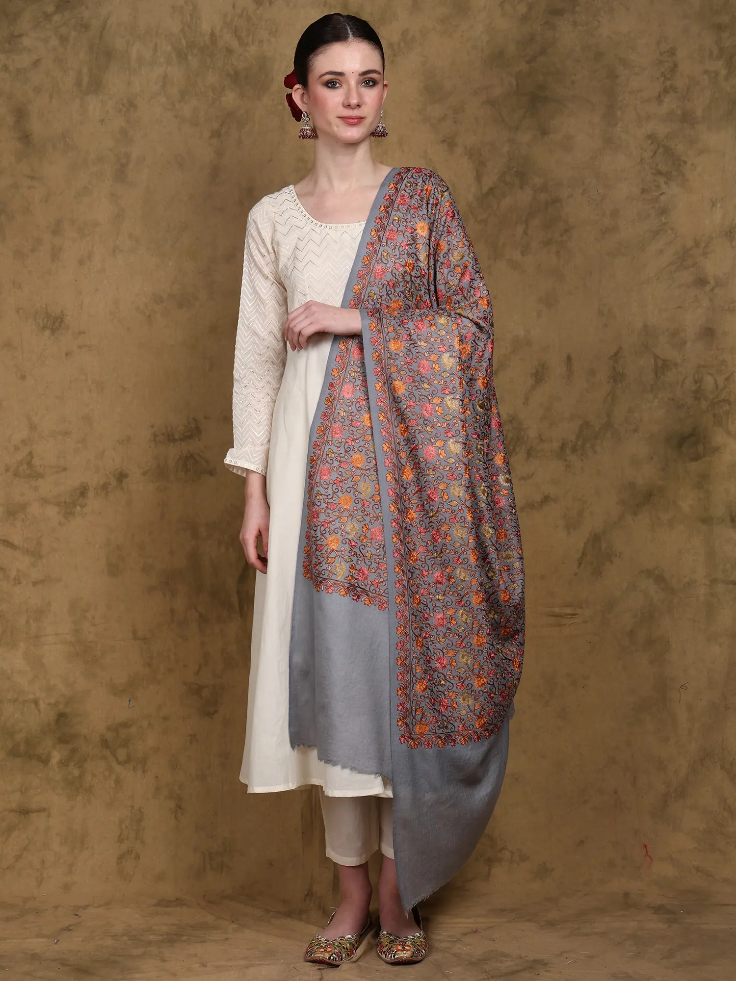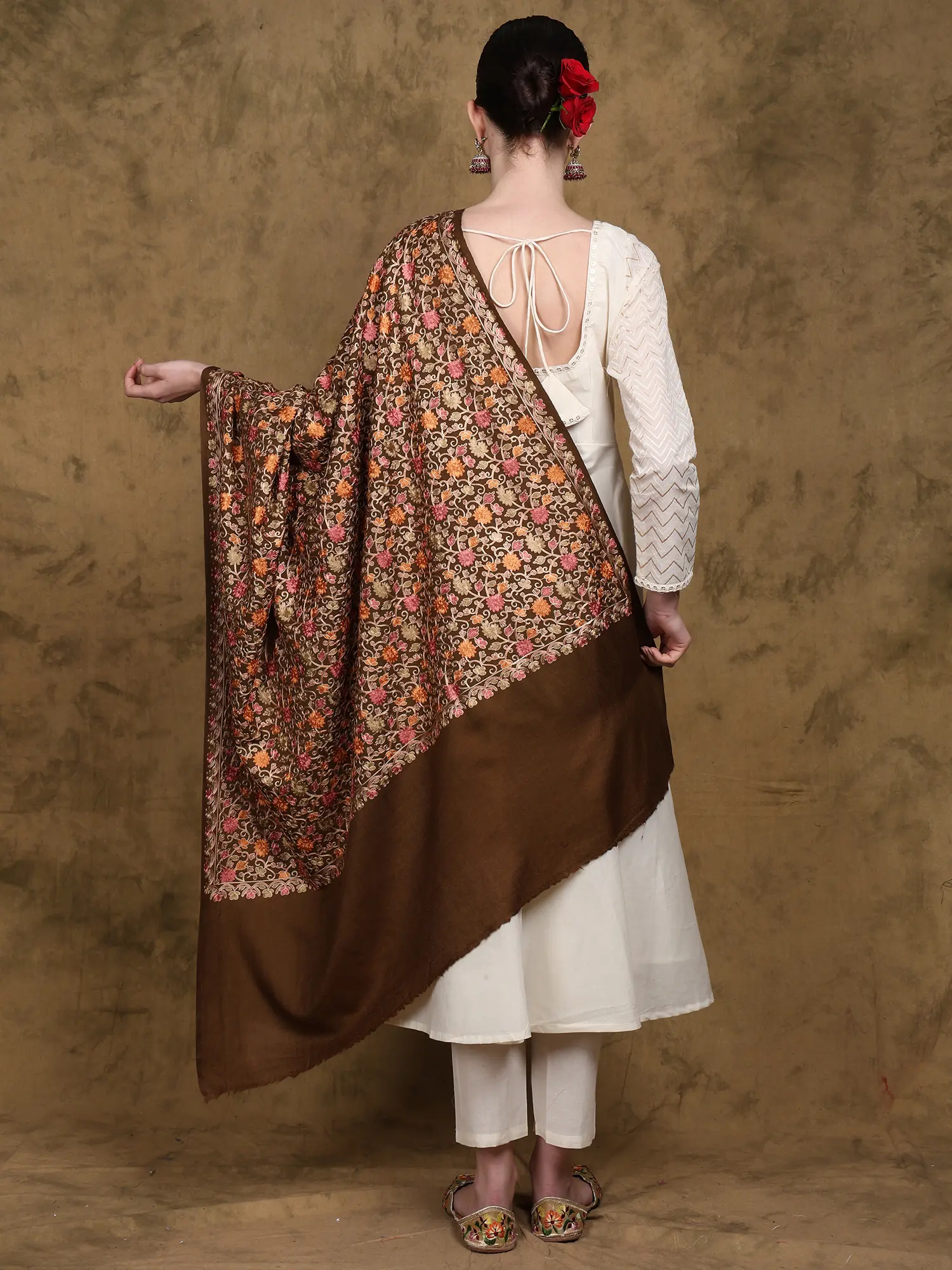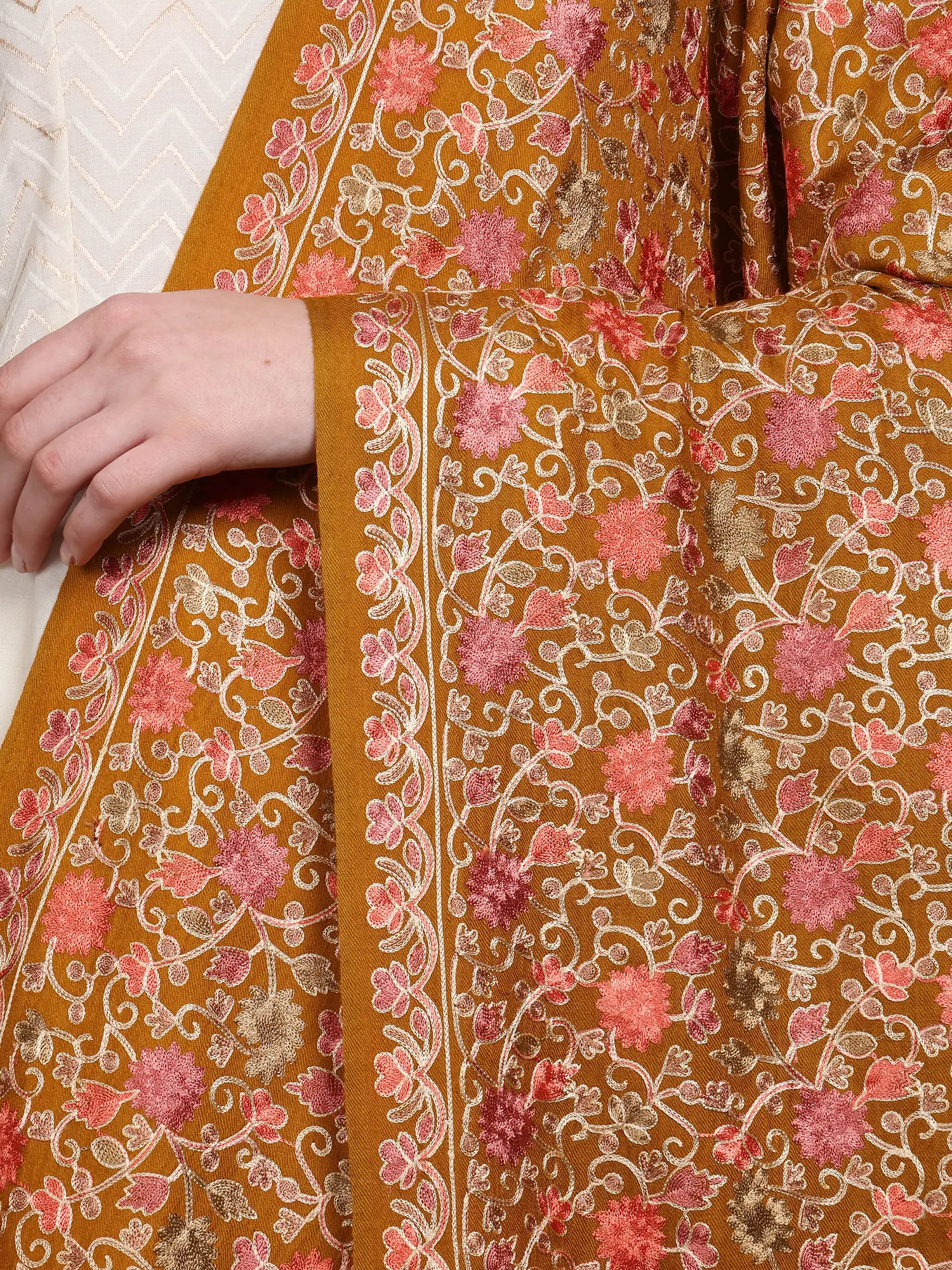Vermillion-Orange Border All Over Floral Motif Kani Polyester Saree with Shawl and Blouse