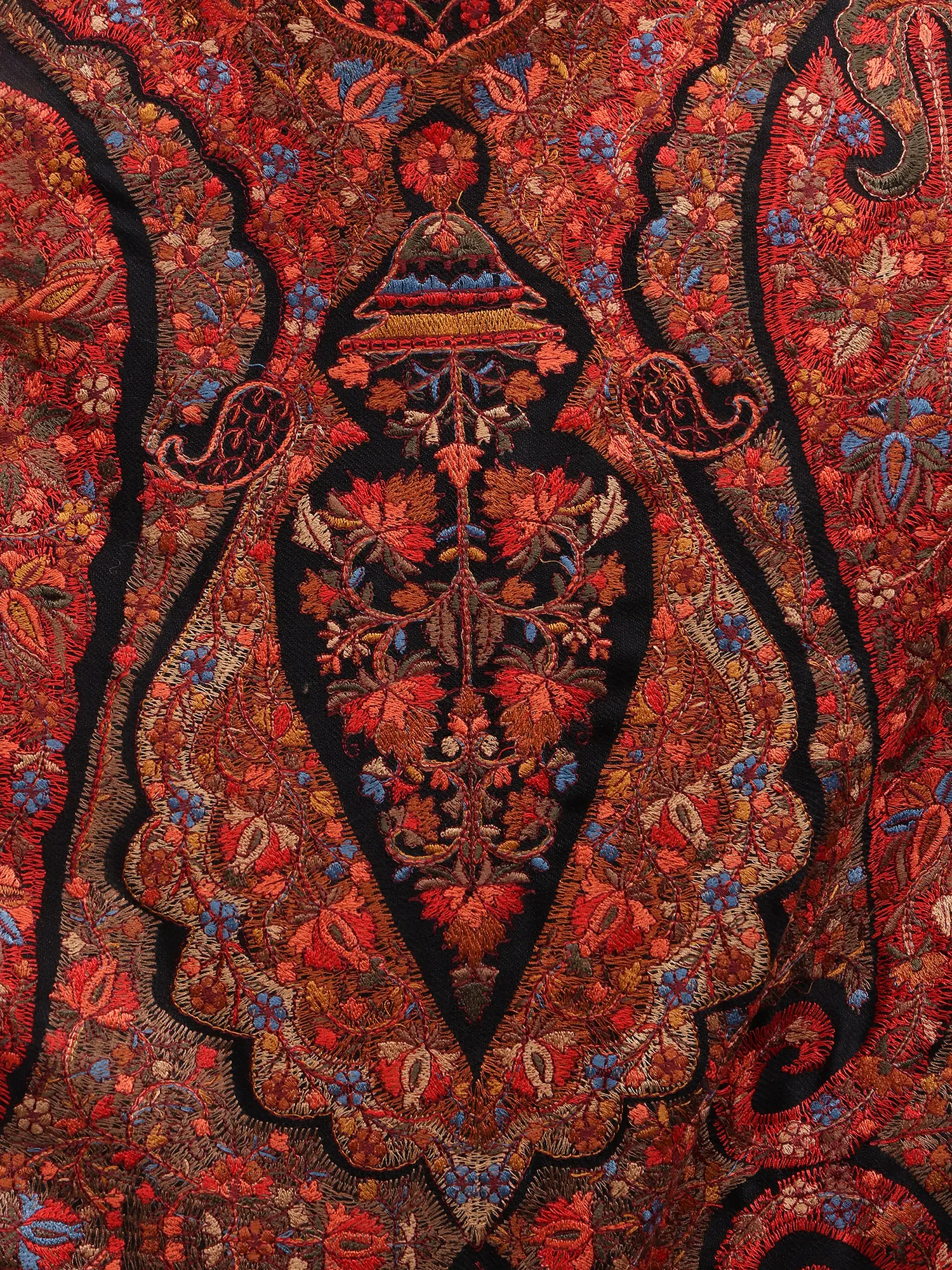 Amritsari Chain Stitch Satin Aari Embroidered Mughal Motif Pure Wool Shawl
