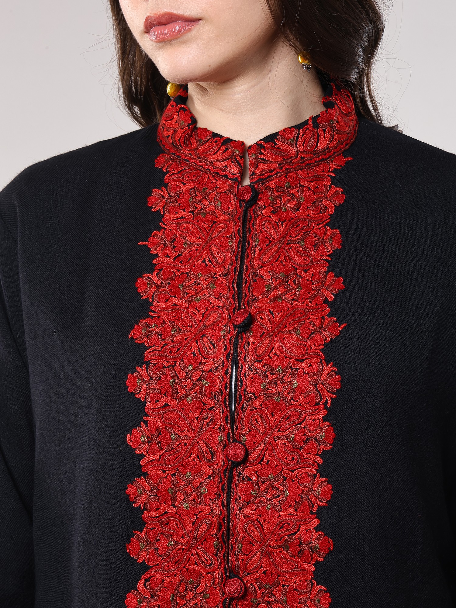 Kashmir is globally celebrated for its unparalleled textile traditions, and this creation is a testament to that rich legacy. The Aari embroidery, a time-honored skill passed down through families, has been used for centuries to embellish garments with stunning complexity and artistry. Wearing this piece connects you to a heritage of exquisite craftsmanship and the enduring beauty of this mountainous region.