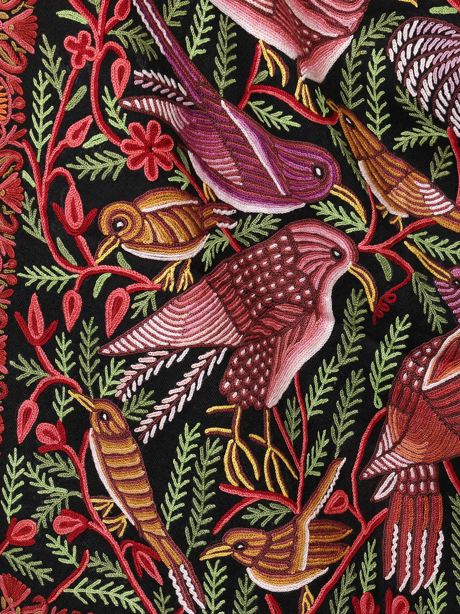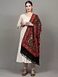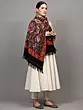 Jet-Black Pure Wool Stole with Aari Hand-Embroidered Phool Bail from Kashmir