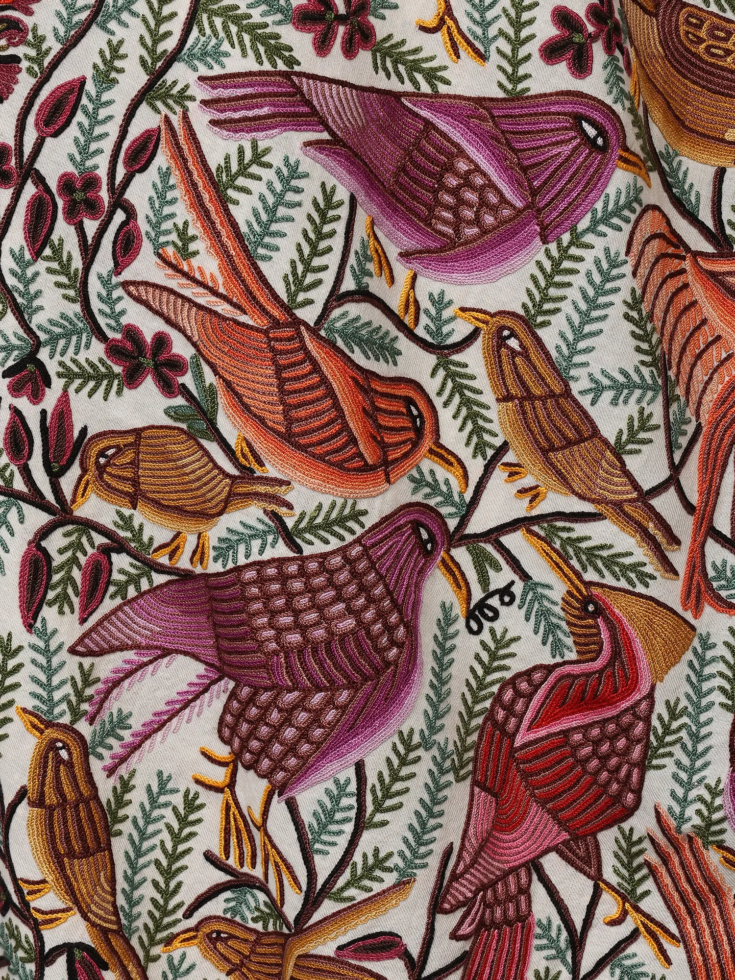 Ivory Diamond Weave Pure Pashmina Shawl with All-Over Sozni Hand-Embroidered Foliage Jaal from Kashmir