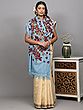 Art Silk Dupatta with Printed Folk Figures Inspired by Warli Art