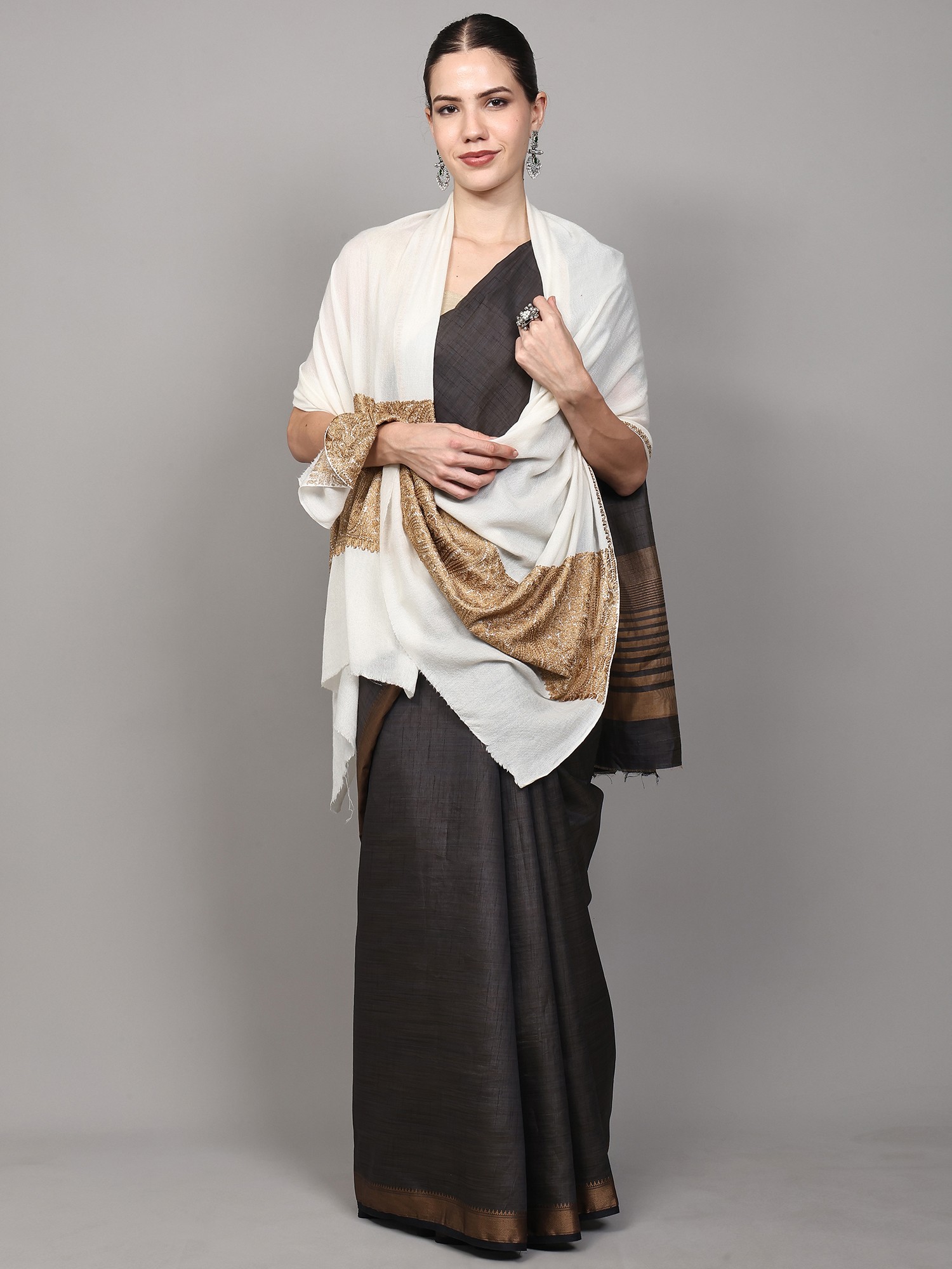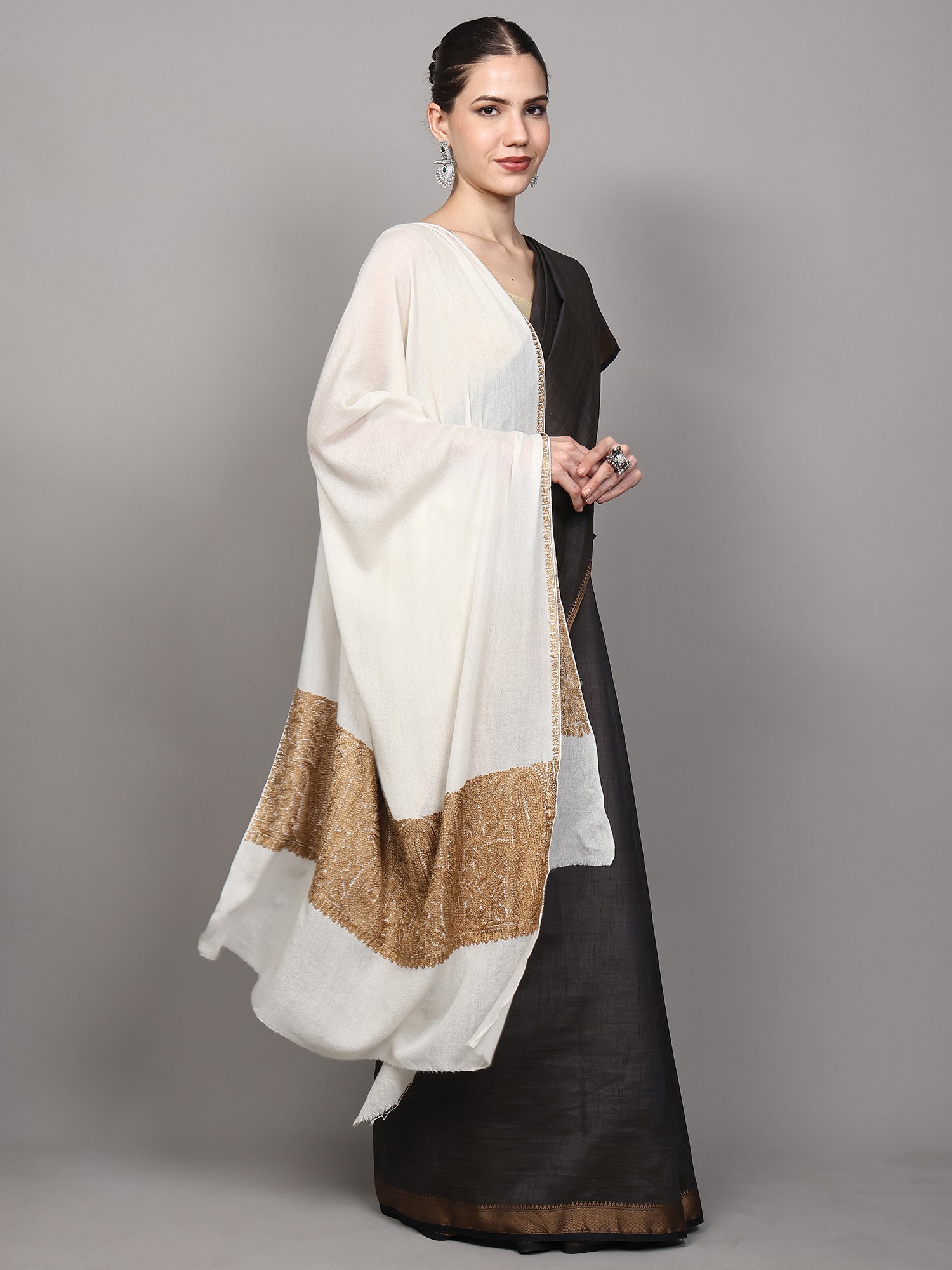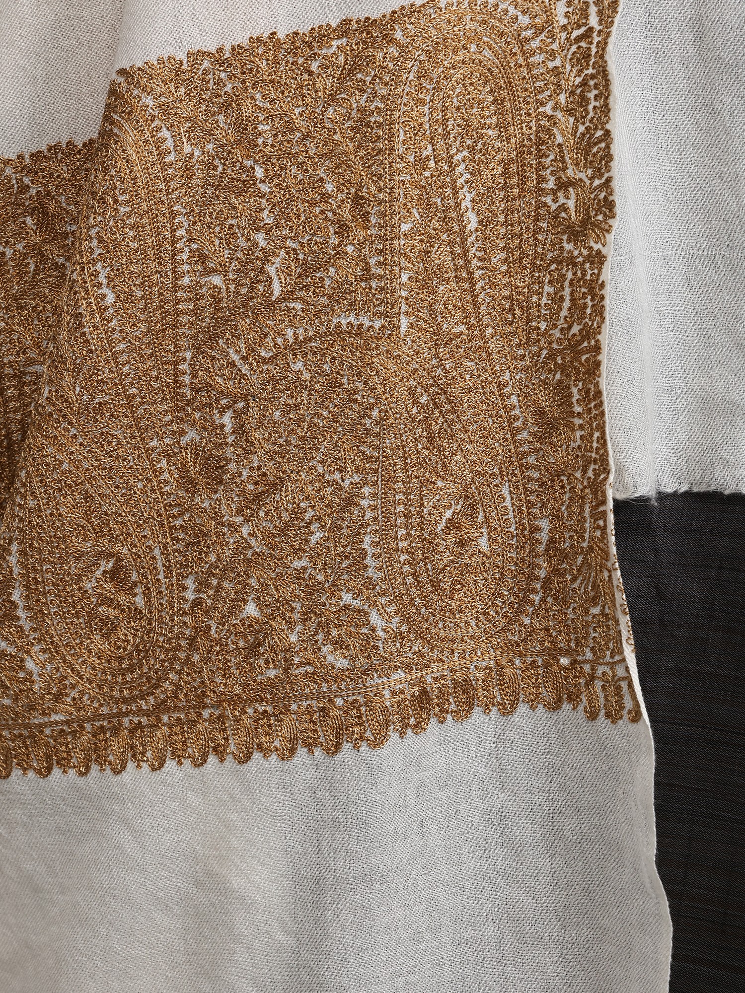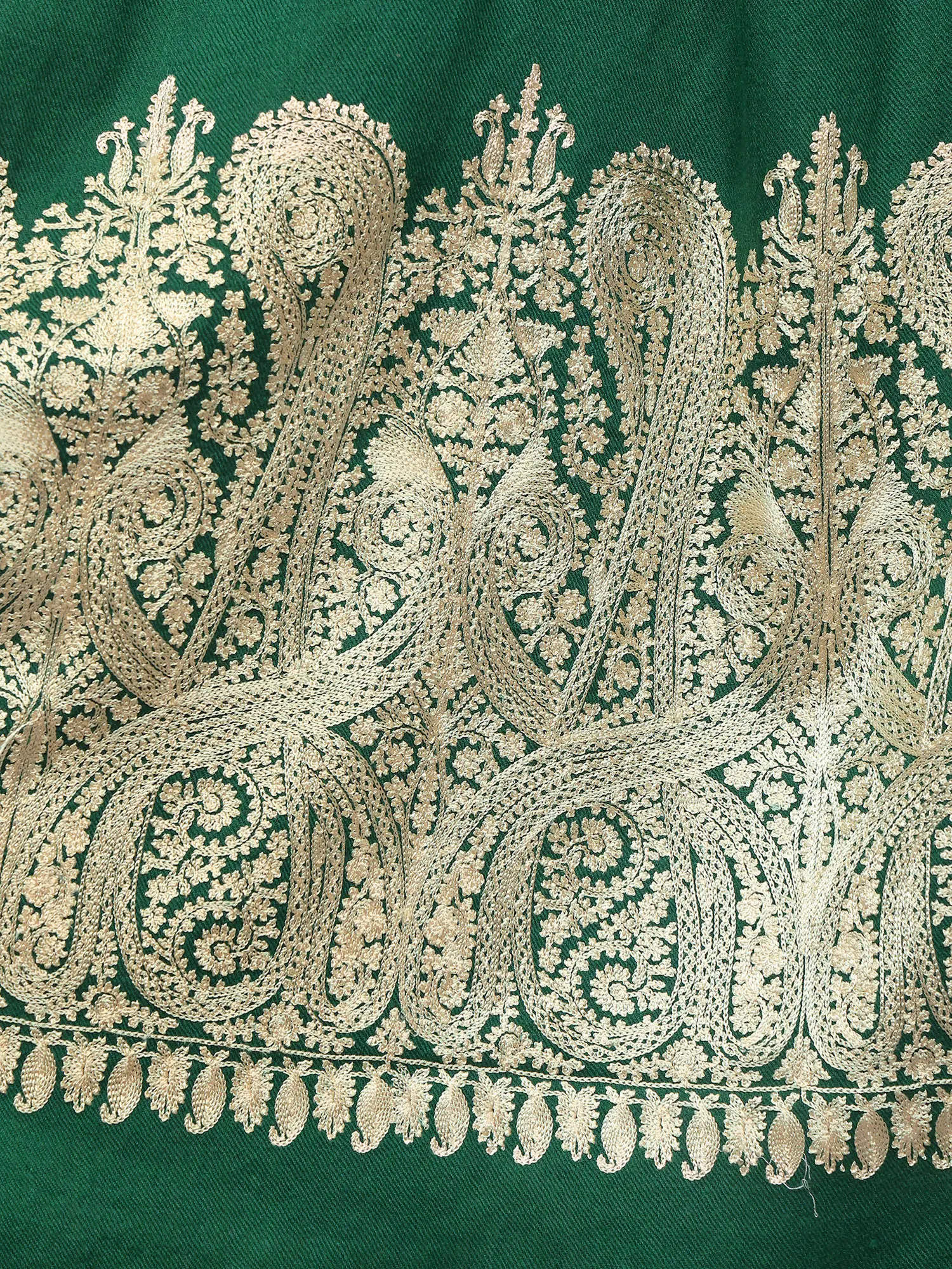 Pure Wool Stole with Aari Hand Embroidered Maple Tree from Kashmir