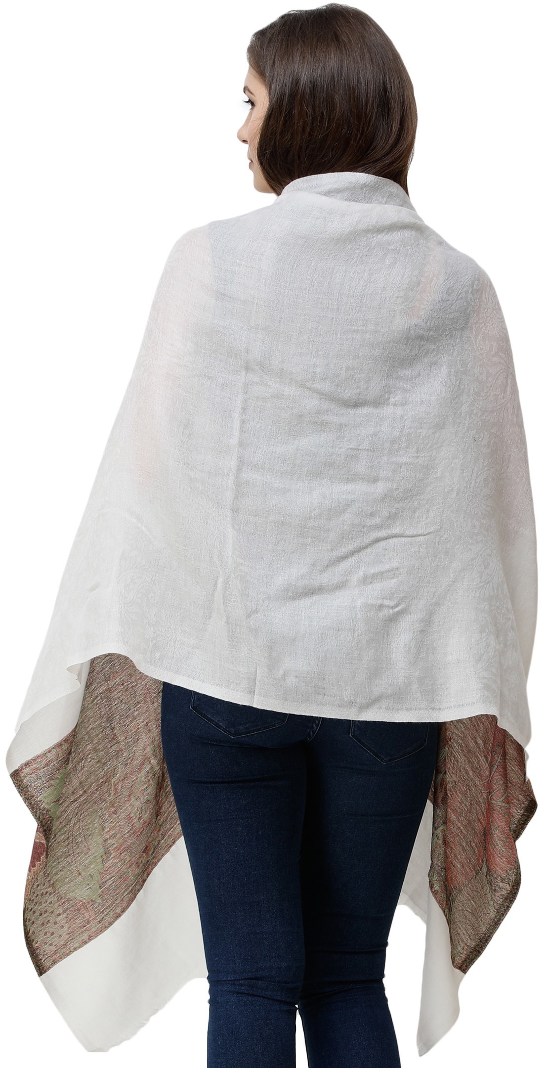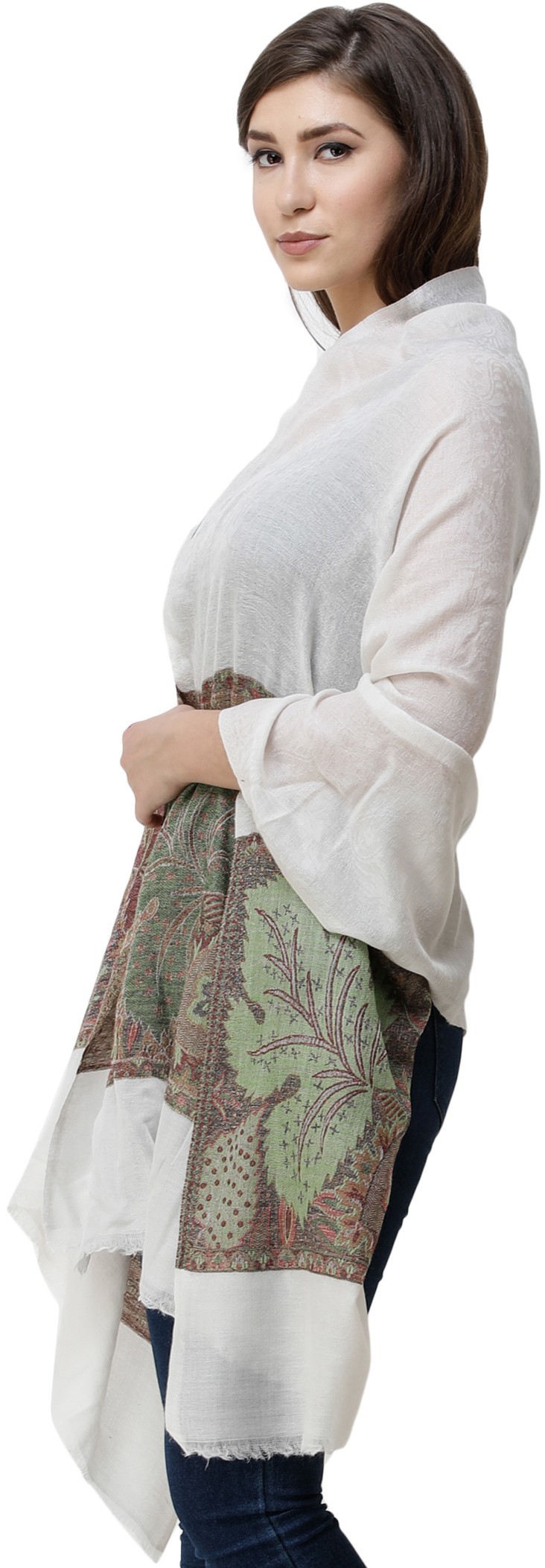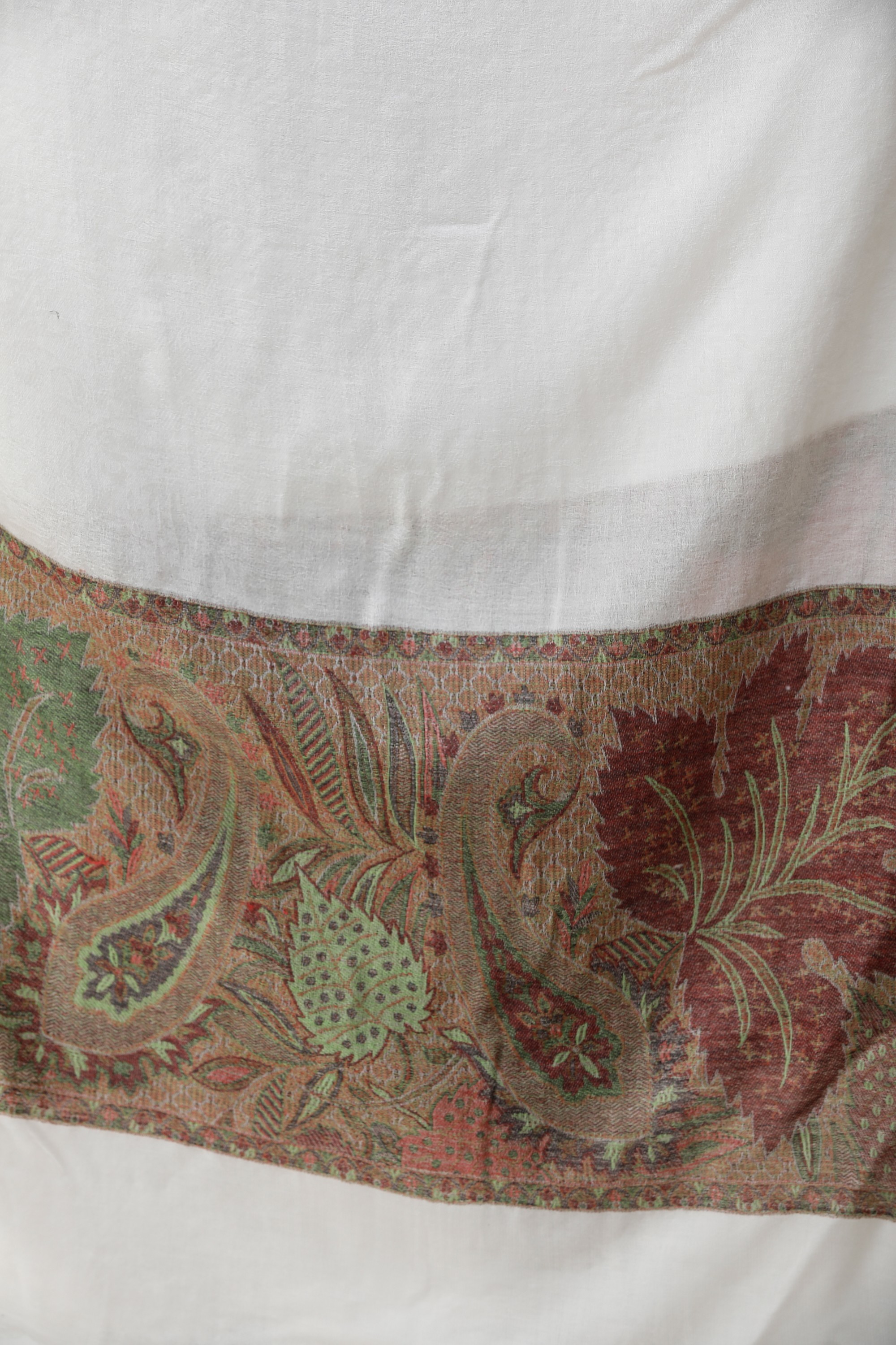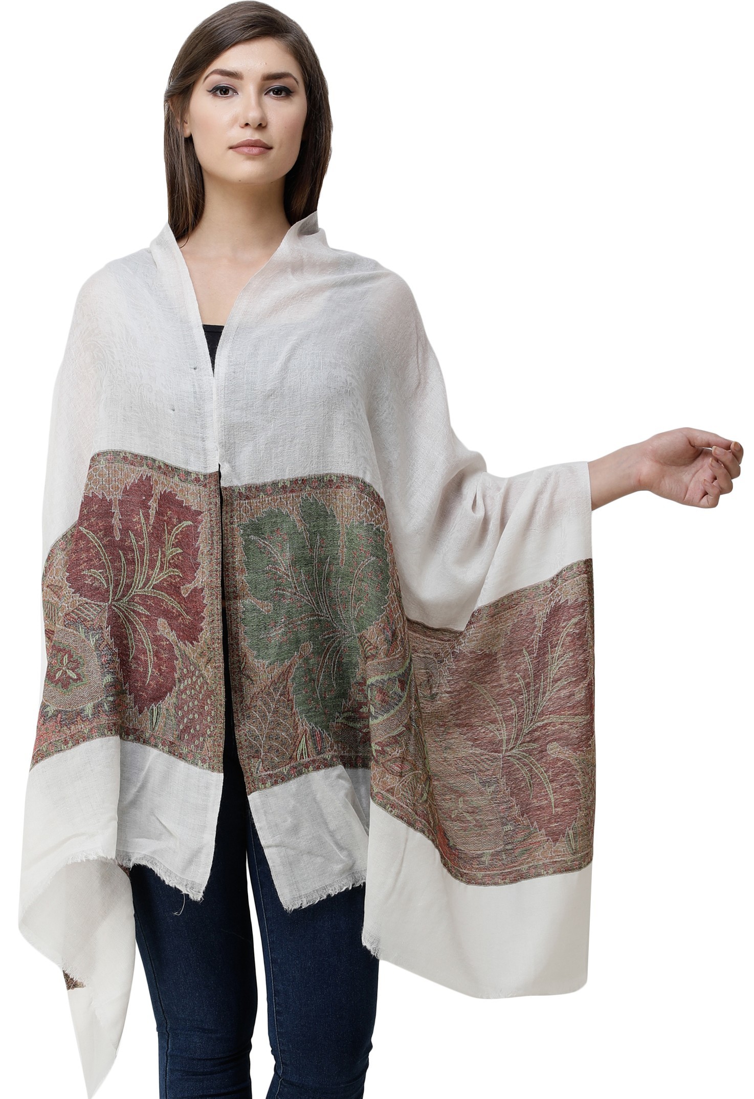 Wrap yourself in warmth and elegance with our Pure Wool Stole from Amritsar, featuring a Woven Maple Leaf and Paisley Motif Broad Border. Crafted with precision, this stole reflects the rich textile traditions of Amritsar. The woven motifs are a testament to the artistry of skilled artisans. Today, this stole harmoniously integrates with contemporary fashion trends, offering both warmth and sophistication. The versatile palette adds a touch of timeless charm to your attire, making it a cherished accessory that embodies the essence of Amritsar's heritage and craftsmanship.