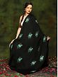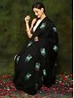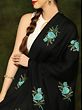 Phantom-Black Kashmiri Pure Pashmina Shawl with Papier Mache Hand-Embroidered Paisleys and Maple Leaves