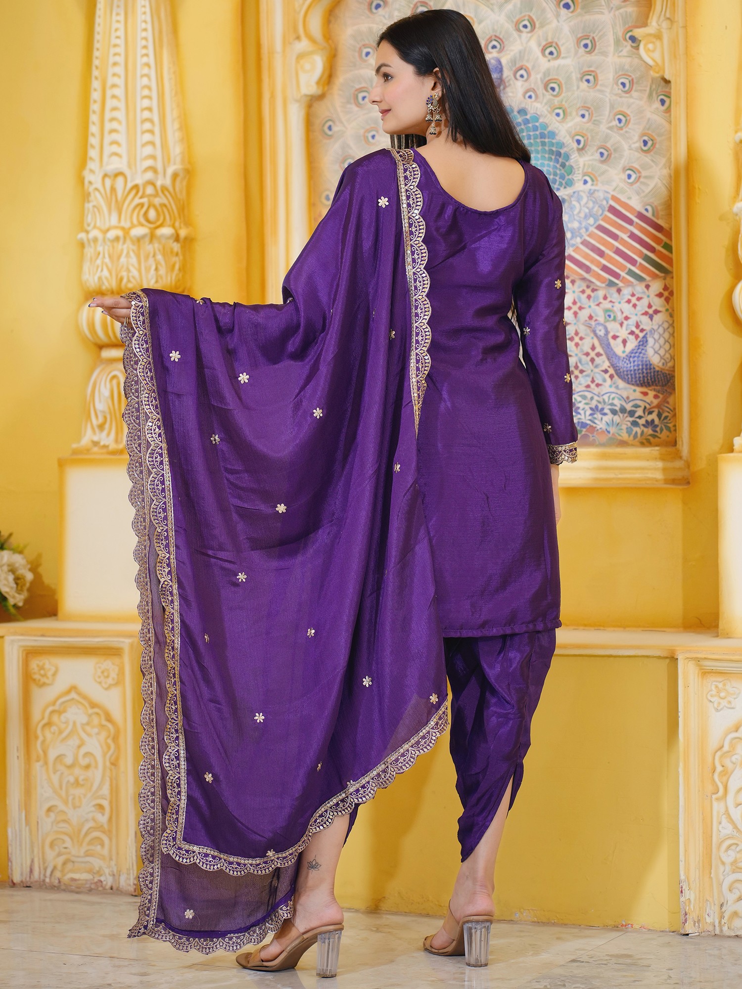 An Ode to Regal Elegance: The Purple-Iris Chinon Patiala Suit