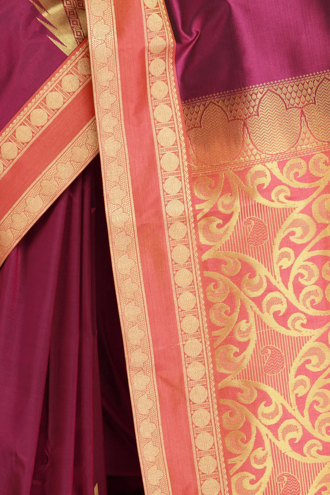 Italian-Straw Pure Silk Kanjivaram Saree with Woven Motifs in Copper Colored Thread and Contrast Border-Anchal from Bangalore