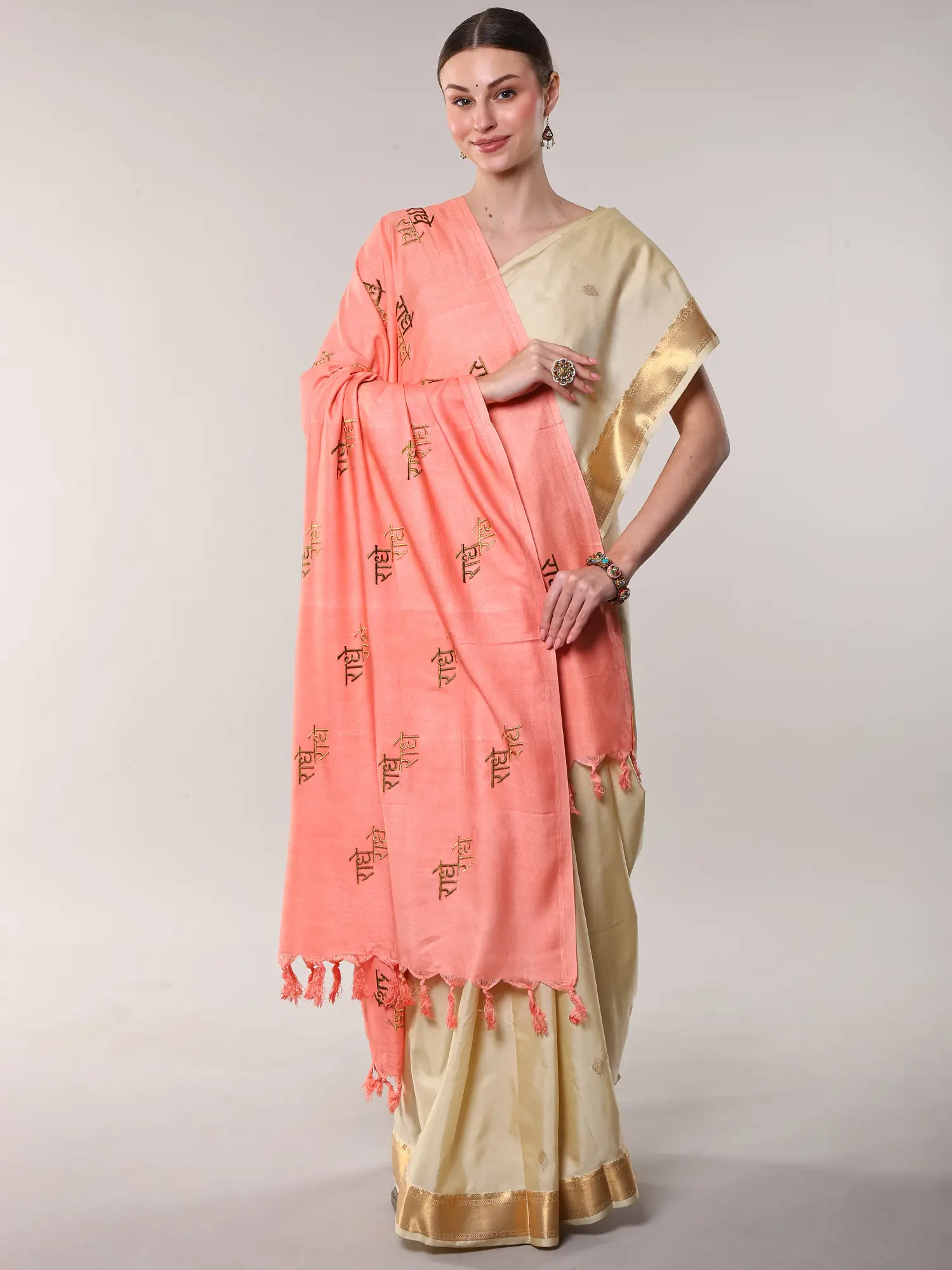 Wrap yourself in divine elegance with our Radhe-Radhe Prayer Stole, adorned with intricate thread embroidery. Crafted from soft fabric, this stole becomes a canvas where spirituality meets artistic finesse. The Radhe-Radhe embroidery adds a touch of sacred charm, making this stole a symbol of faith and cultural richness. Immerse yourself in the charm of spiritual tradition, and let the Radhe-Radhe Prayer Stole be your expression of refined grace.