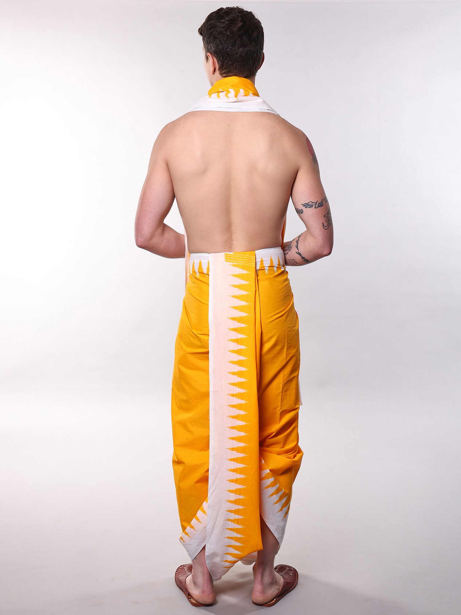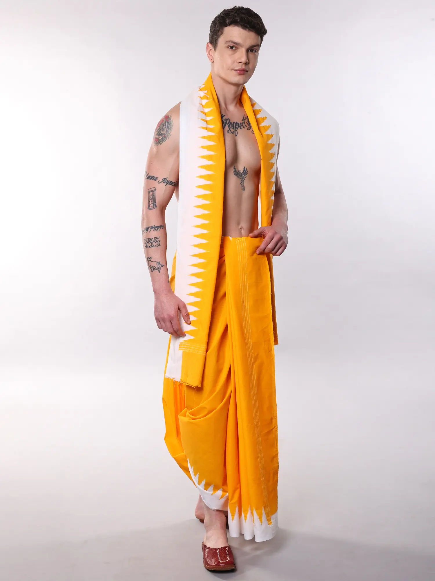 Traditional Woven Temple Border Dhoti and Angavastram Set