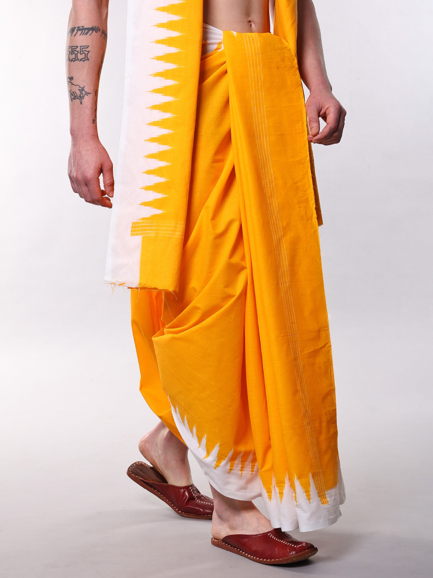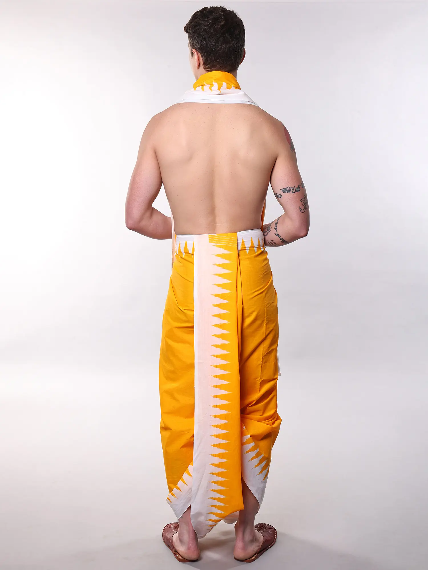 Sambalpuri Dhoti and Angavastram Set with Ikat Temple Border