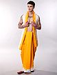 Traditional Temple Border Dhoti & Shoulder Cloth Set - Art Silk Ikat