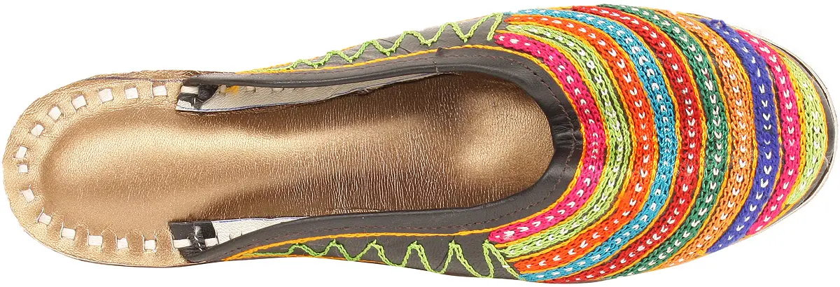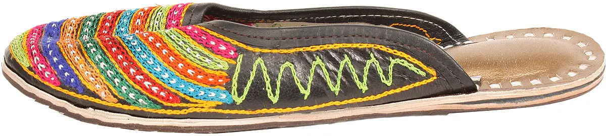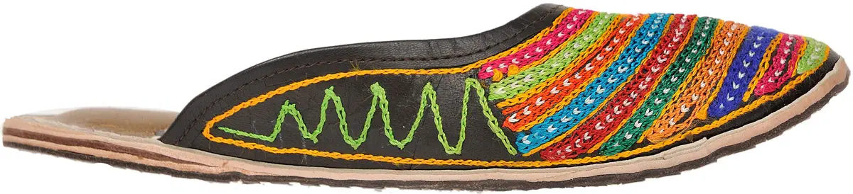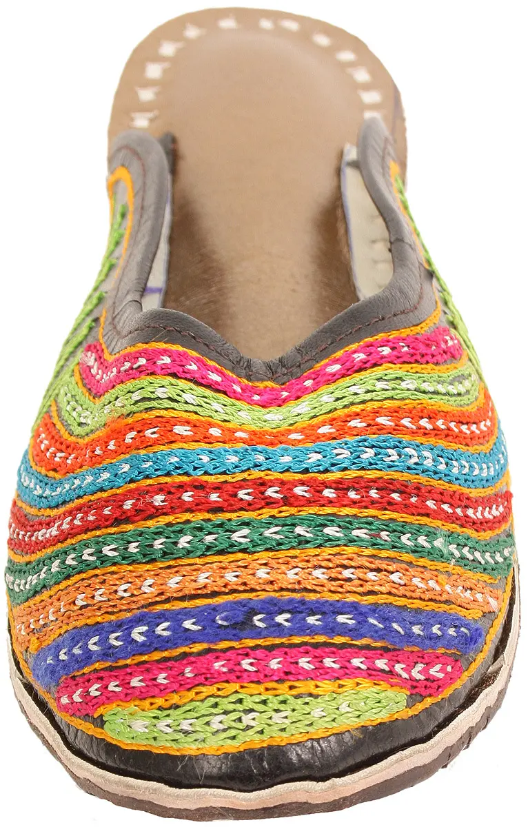 With these Punjabi Rainbow Aari-Embroidered Slippers, you may enter a world of vivid heritage. Carefully crafted in 100% pure leather, these slippers display an enthralling spectrum of hues. Beyond mere footwear, they symbolize the rich cultural tapestry of Punjab, expressing tales of legacy and artistic mastery. Lightweight and comfortable, these slippers effortlessly blend style with utility, making them perfect for both casual and festive occasions. Stride confidently in genuine leather, revel in the essence of Punjab’s artistic heritage, and let each step be a celebration of culture and comfort.