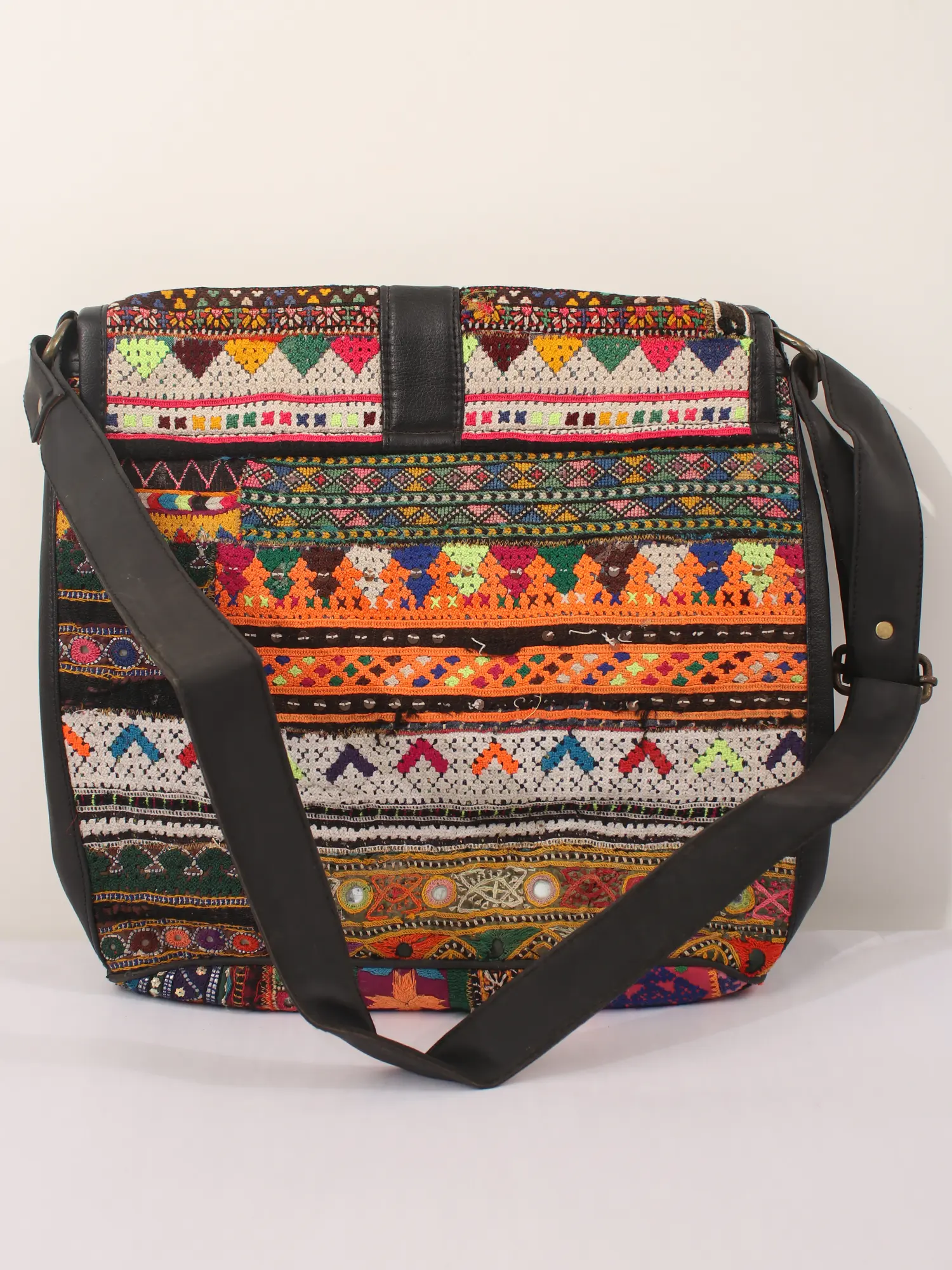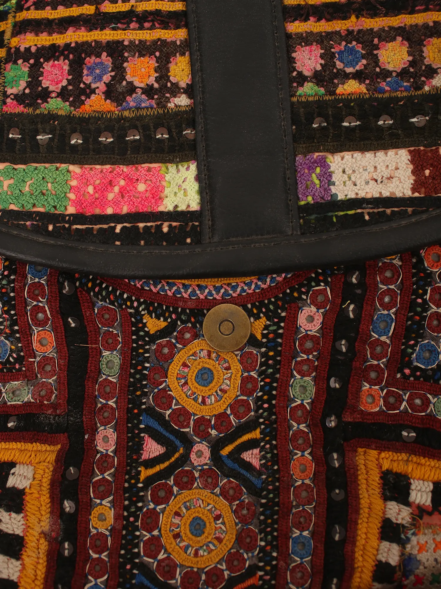 Multicolor Sequins-Mirror Work Boho Cross Bag with All-Over Antique Rabari Embroidery