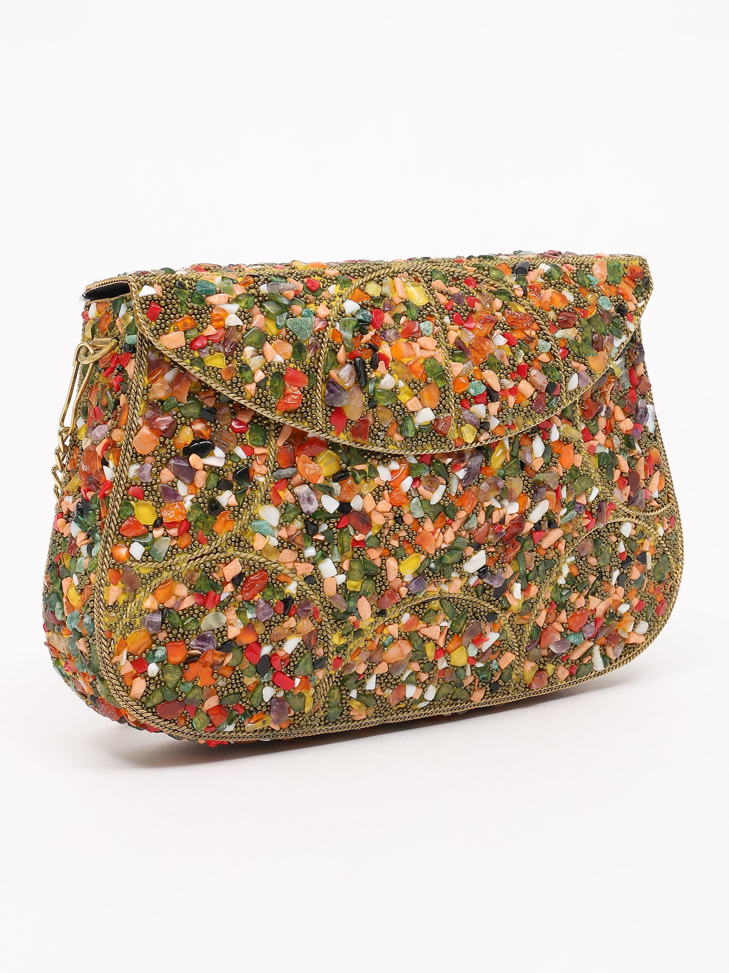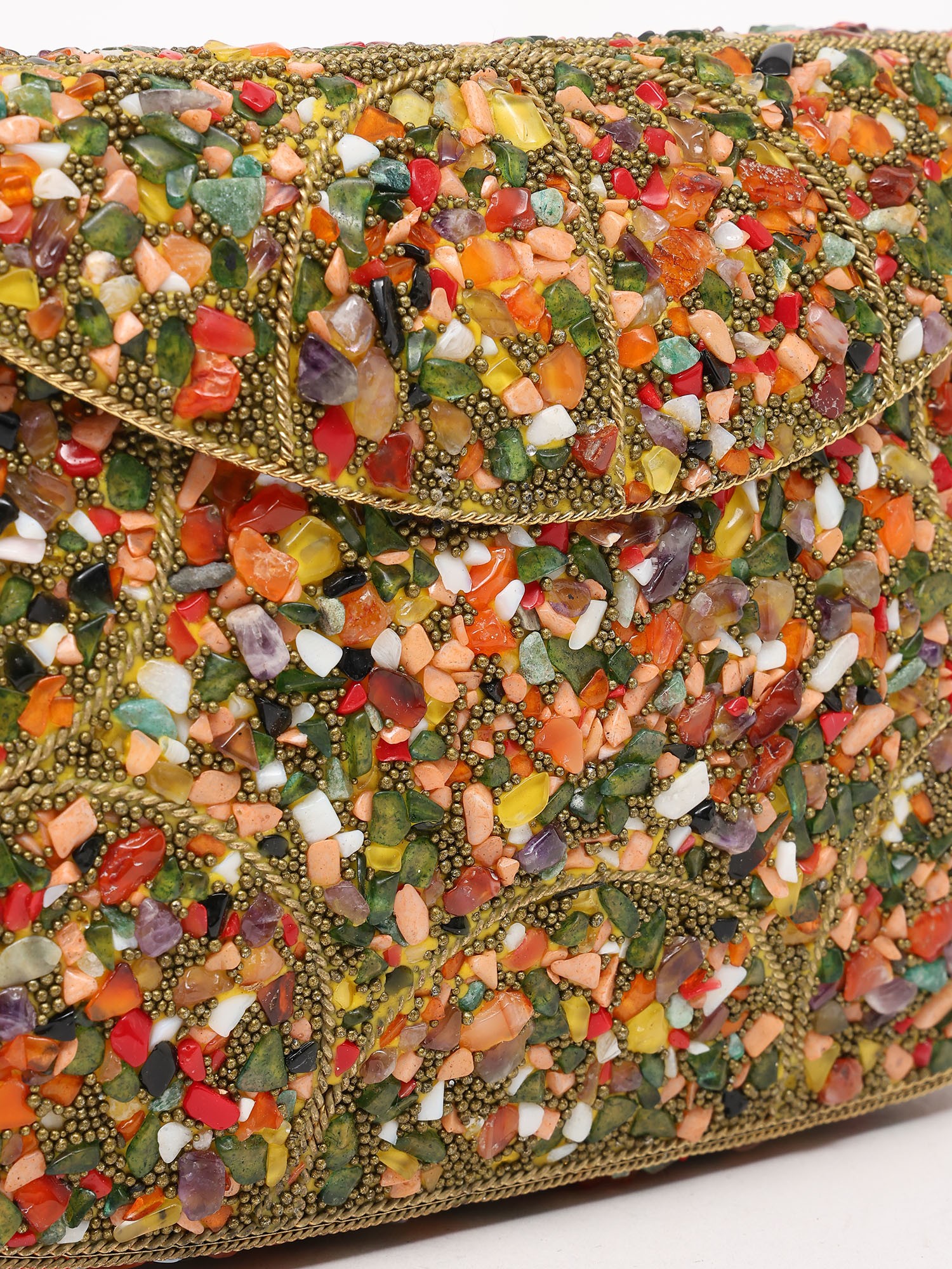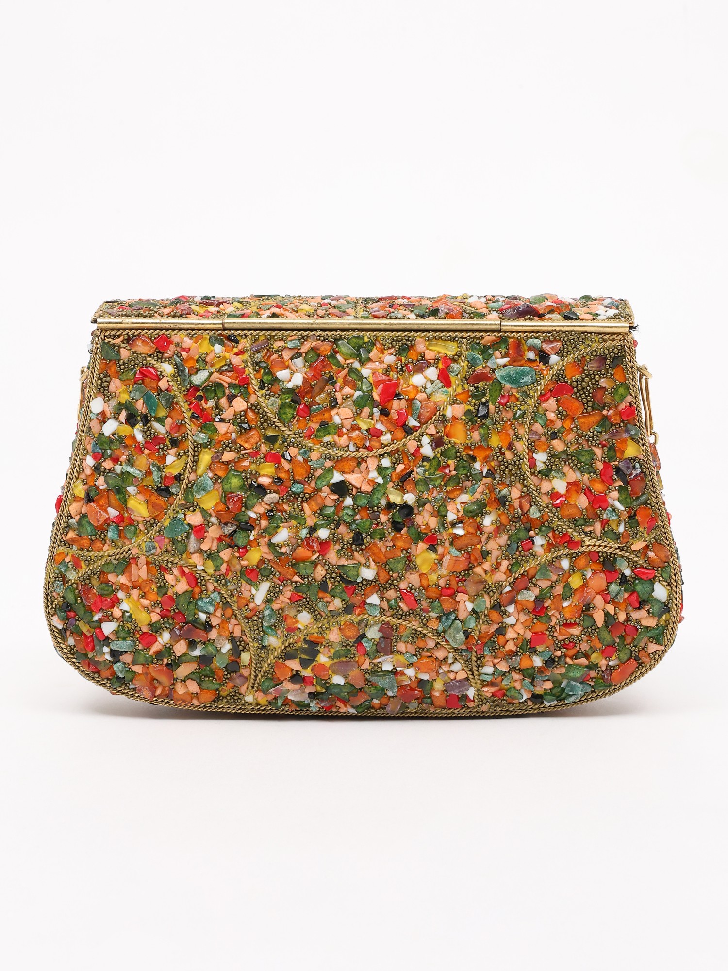 Drawstring Potli Bags with Brocaded Floral Motifs and Lace Work