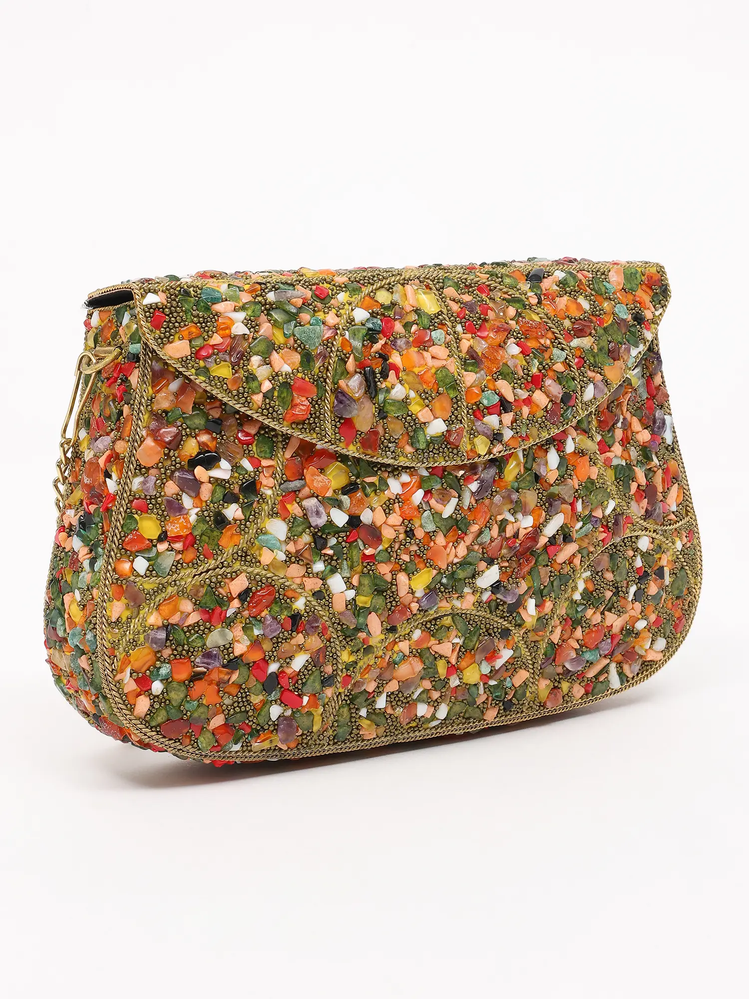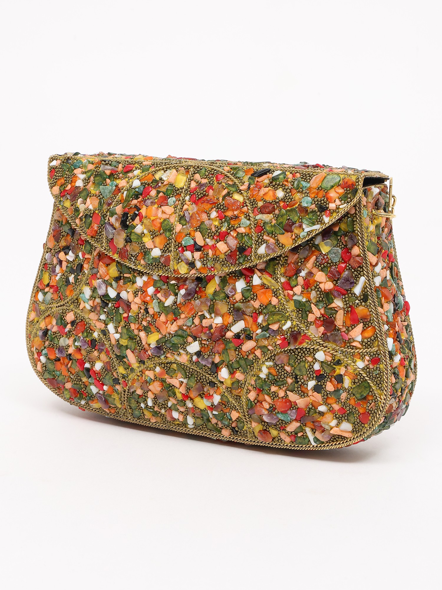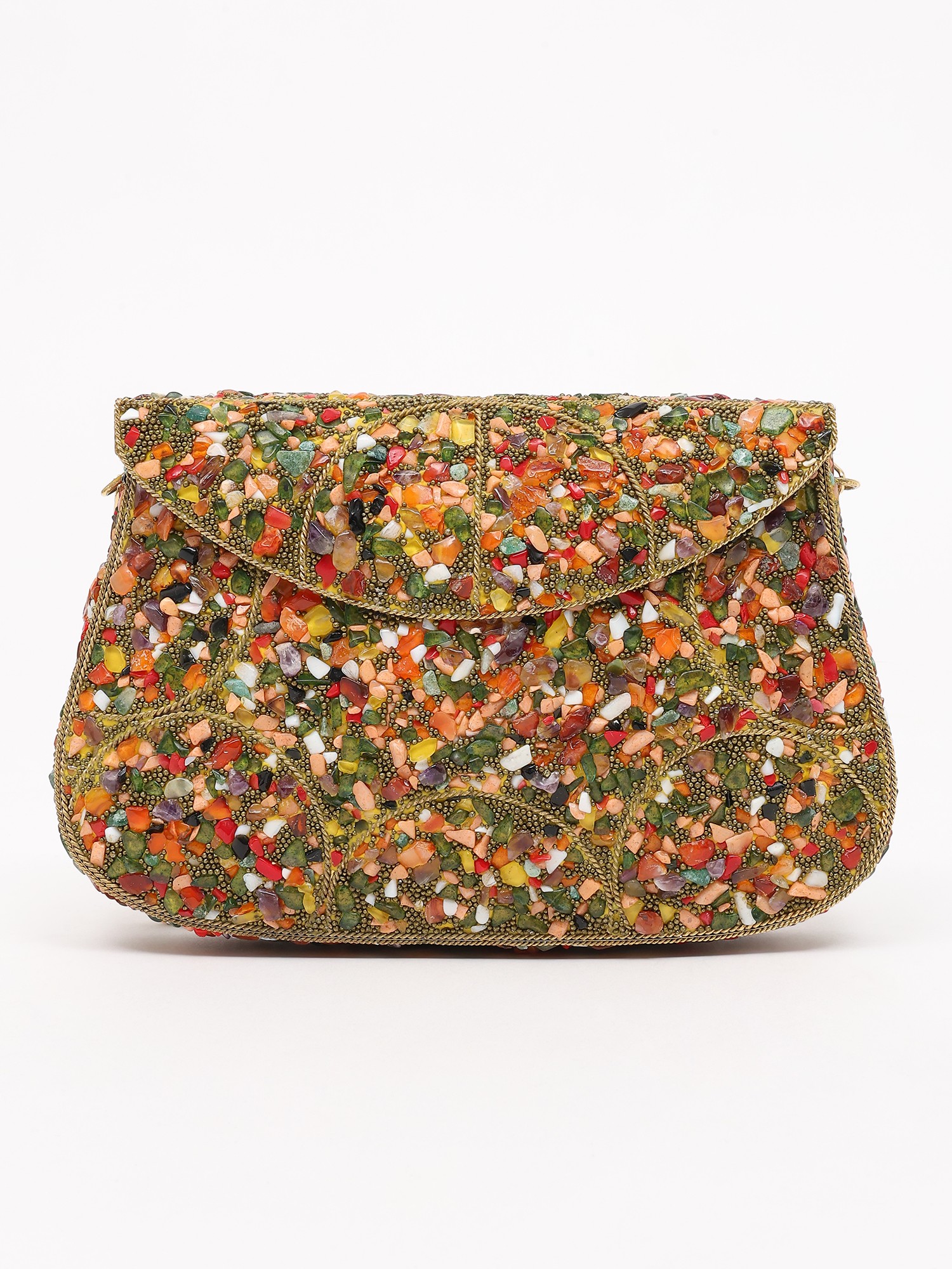 Drawstring Potli Bags with Brocaded Floral Motifs and Lace Work
