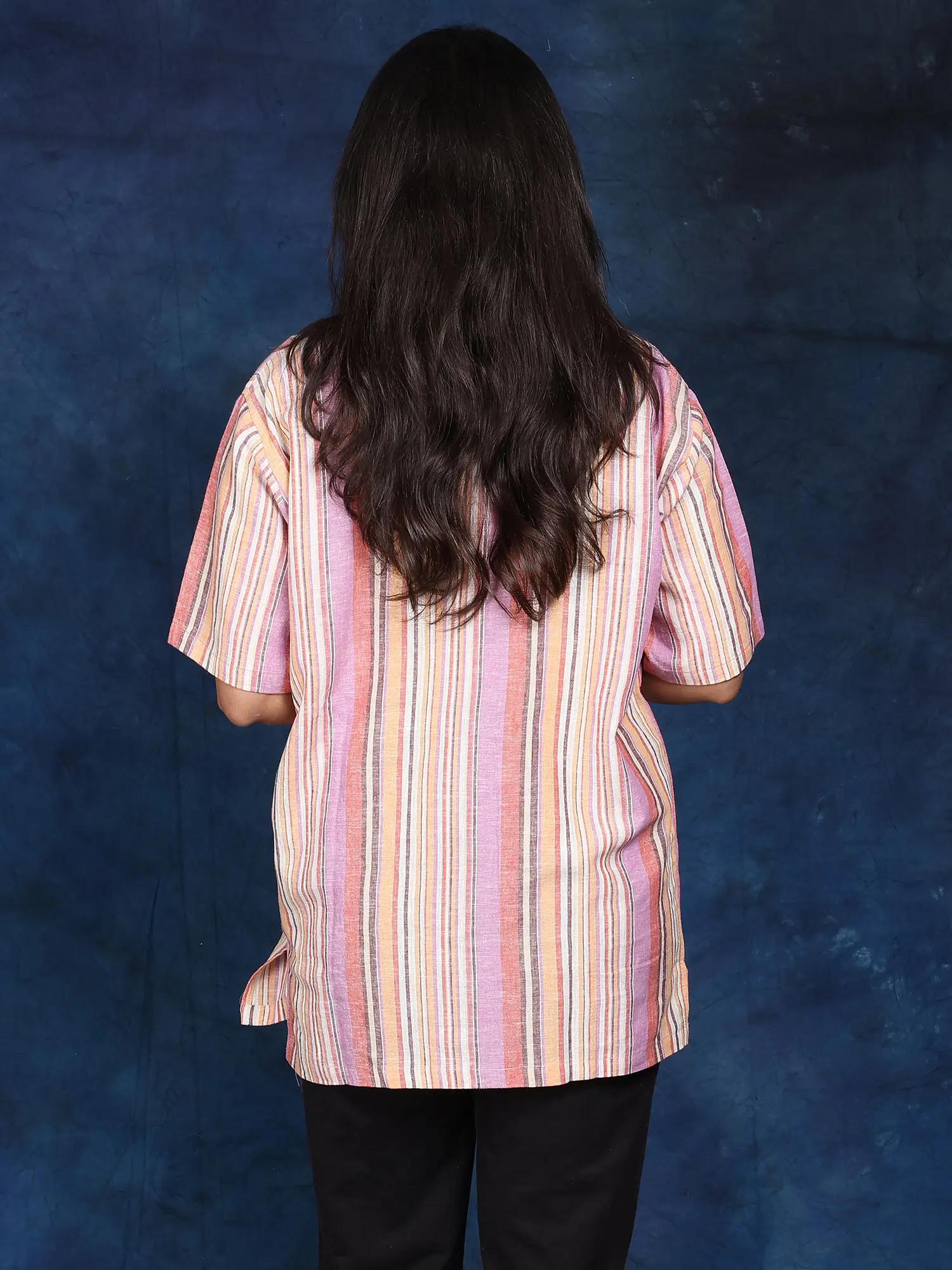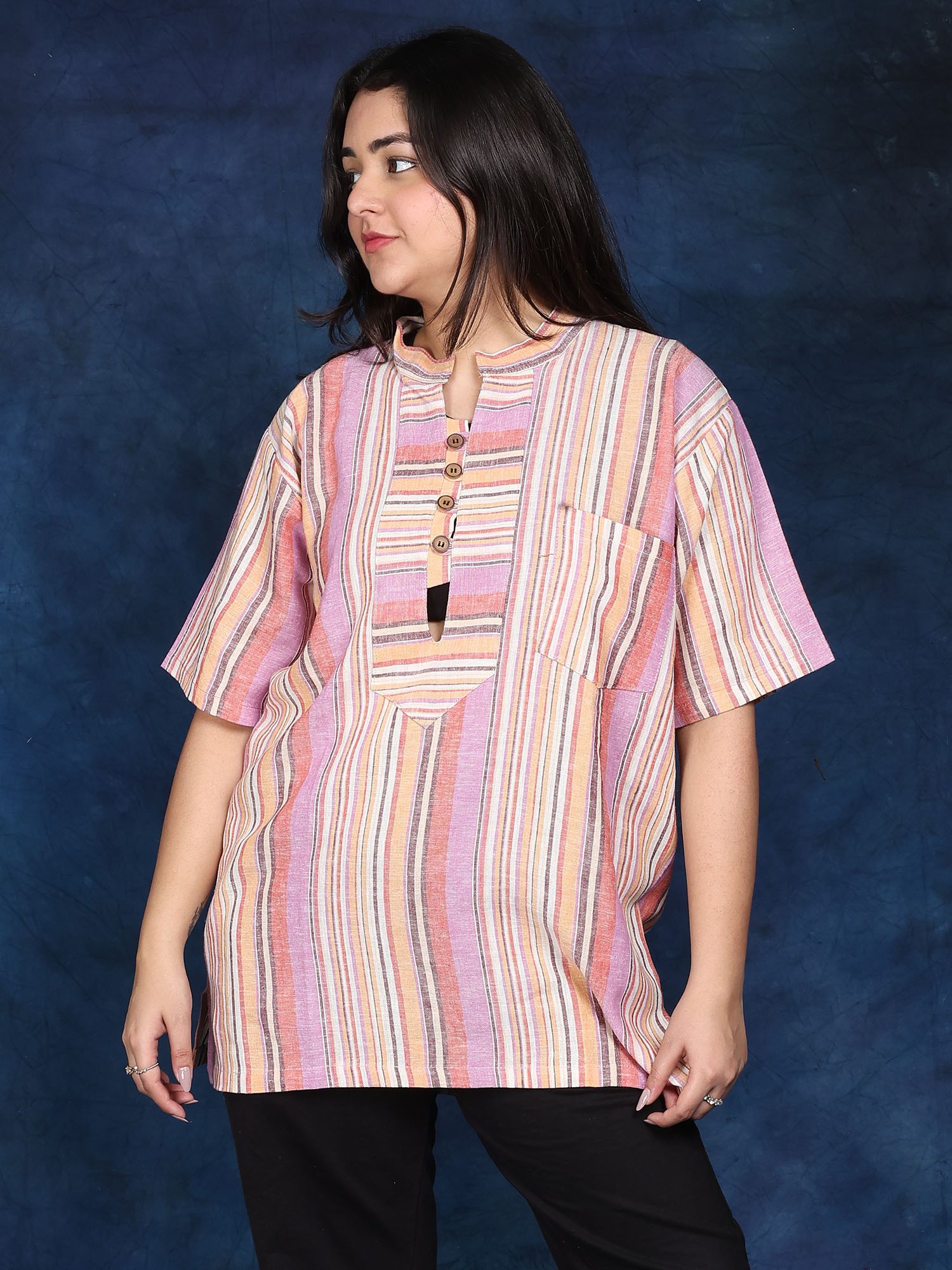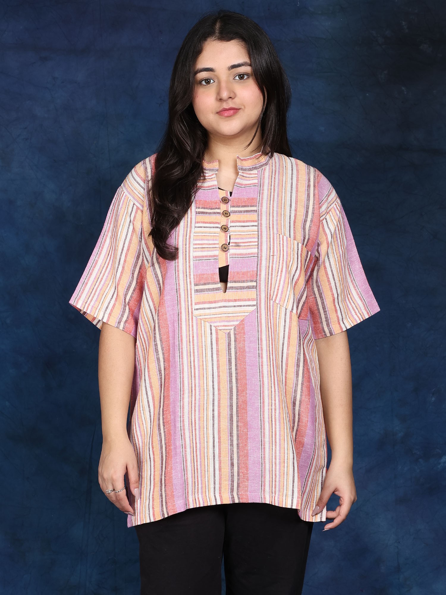 Cotton Short Kurti with Printed Auspicious Symbols of Hinduism and Front Pocket