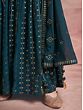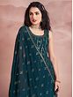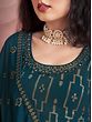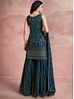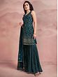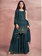 Leave an alluring impact on any festive gathering with the deep hue of this Rama-green designer sharara suit set. Using the soft and chic georgette a classic ethnic appeal has been crafted in this suit. The kurta comes with a modern abstract pattern embellished with sequins.