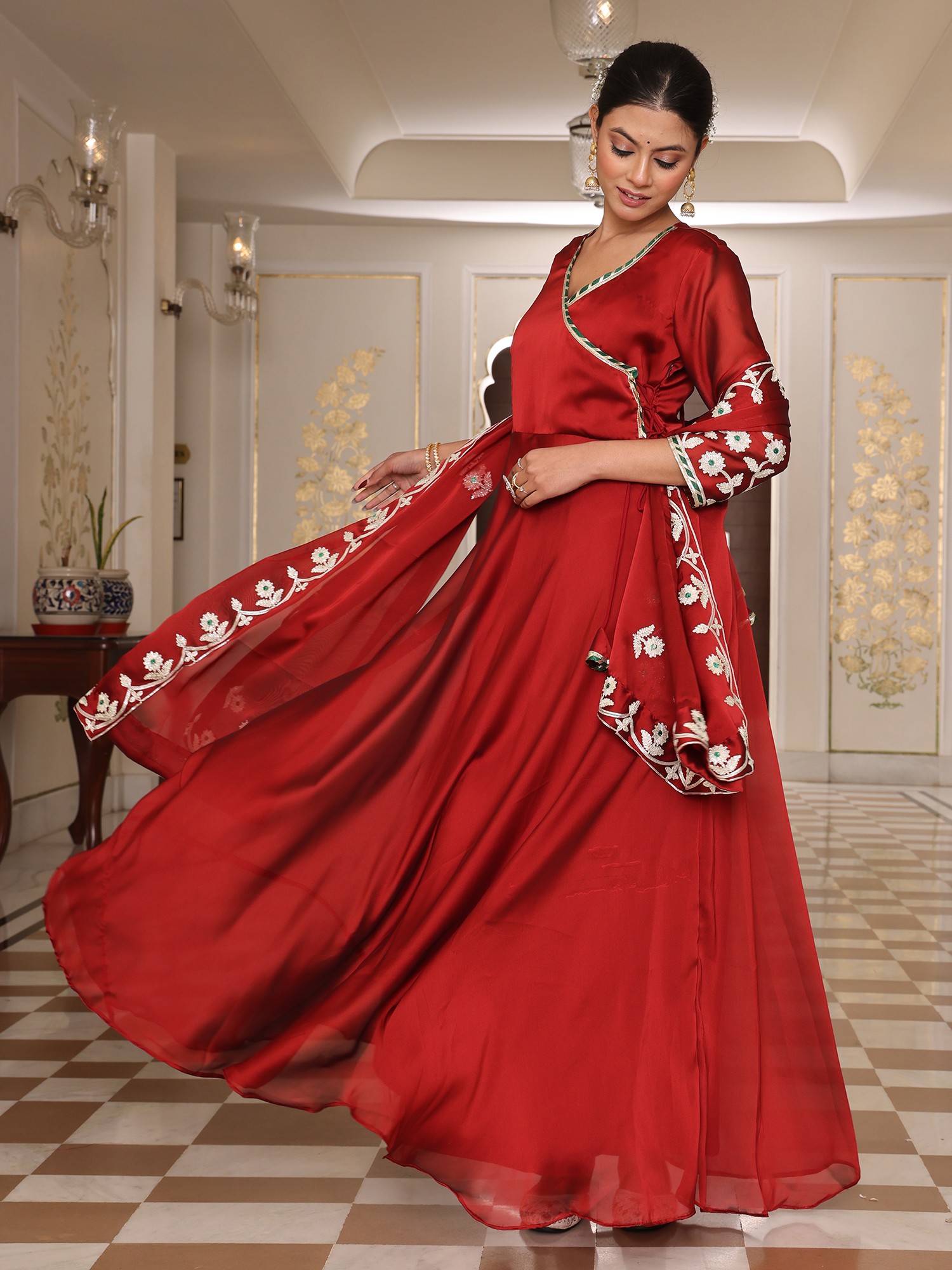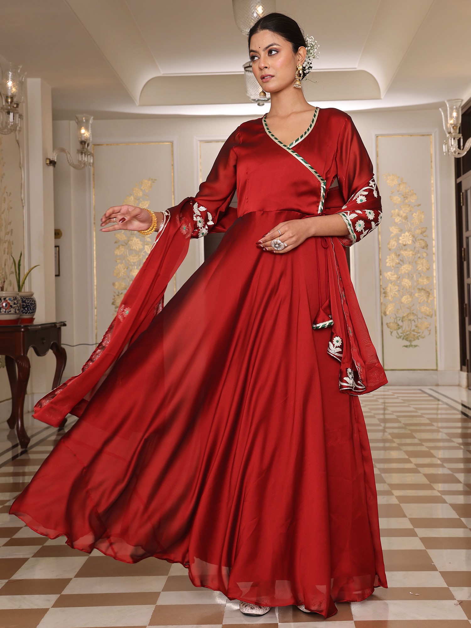 Royal Rangoli Silk Anarkali Suit With Dupatta And Crepe Bottom Highlighted By Luxurious Ribbon Work Embroidery